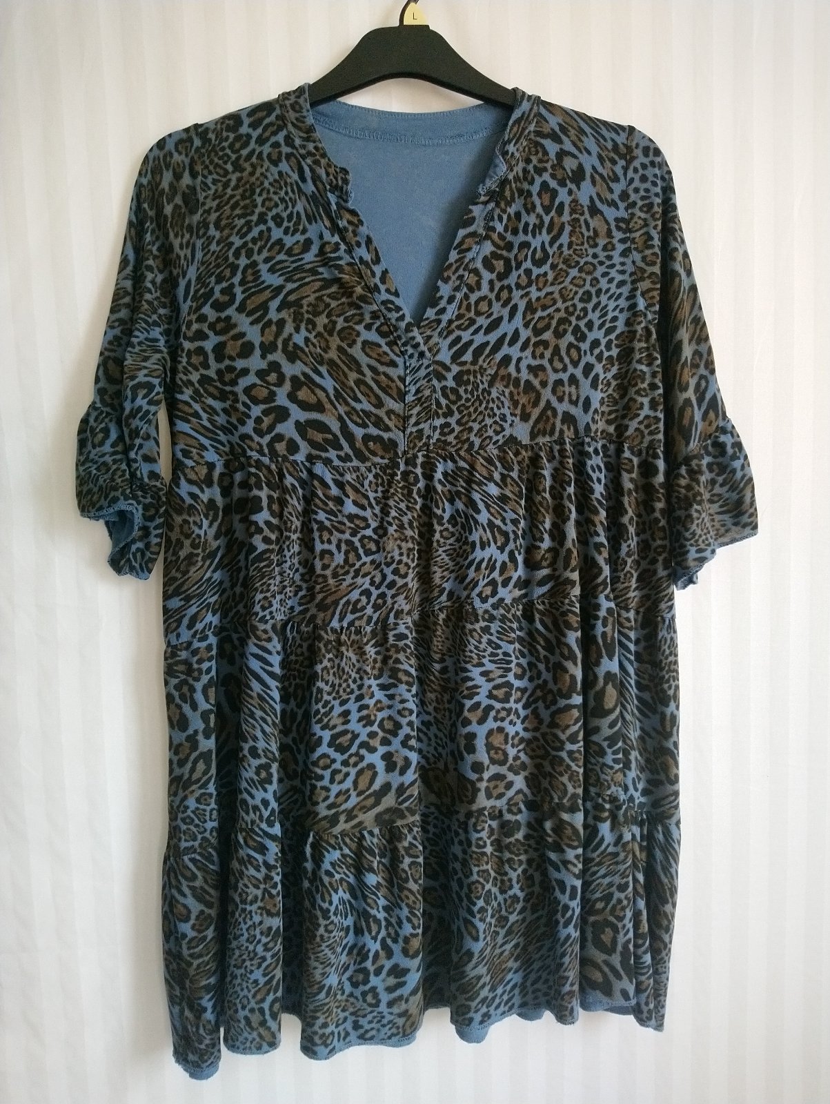 Dámsky modrý top s hnedo čiernym vzorom, Italy