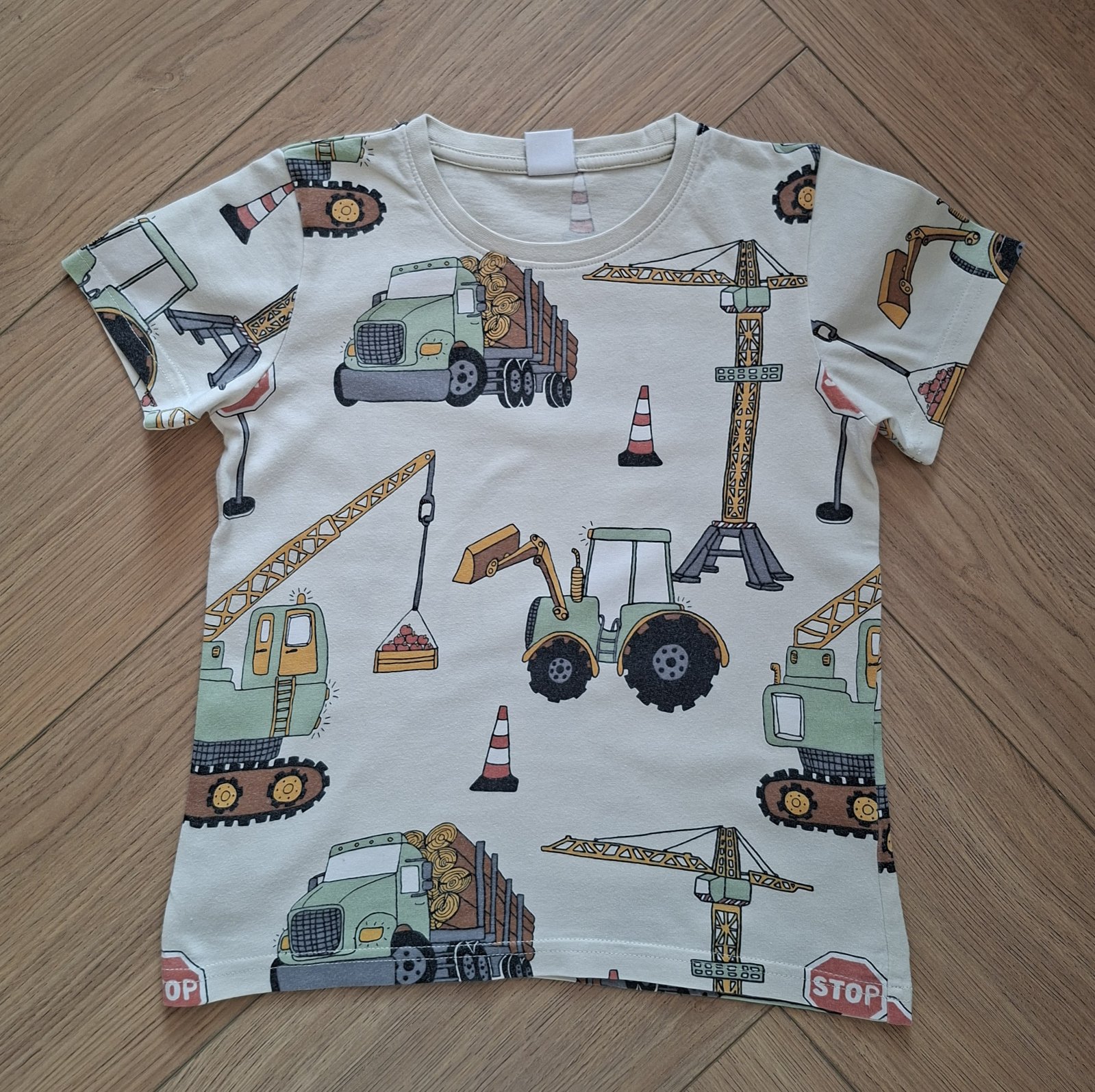Roztomilé chlapčenské tričko pre milovníka strojov vo veľmi dobrom nosenom stave (bez dierok, fliačikov a žmolkov; jemne spraté - detail viď foto). Značka: Lindex (odstrihnutý vnútorný štítok); veľkosť: 110/116 (4 - 6 rokov).