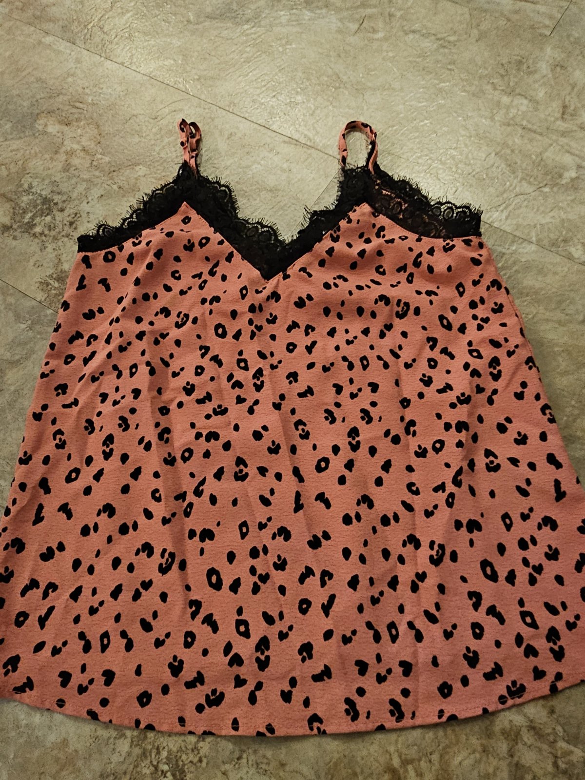 Okolo vystrihu cipka, dlzka bez ranienok 46cm vpredu, vzadu 48cm, sirka 41cm, ramienka nastavitelne.
