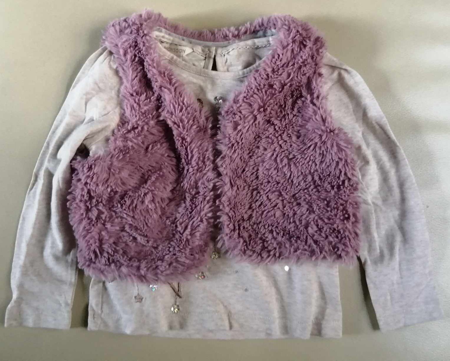 98/104 Monsoon tricko + Next chlpatá vesta,3-4 r.