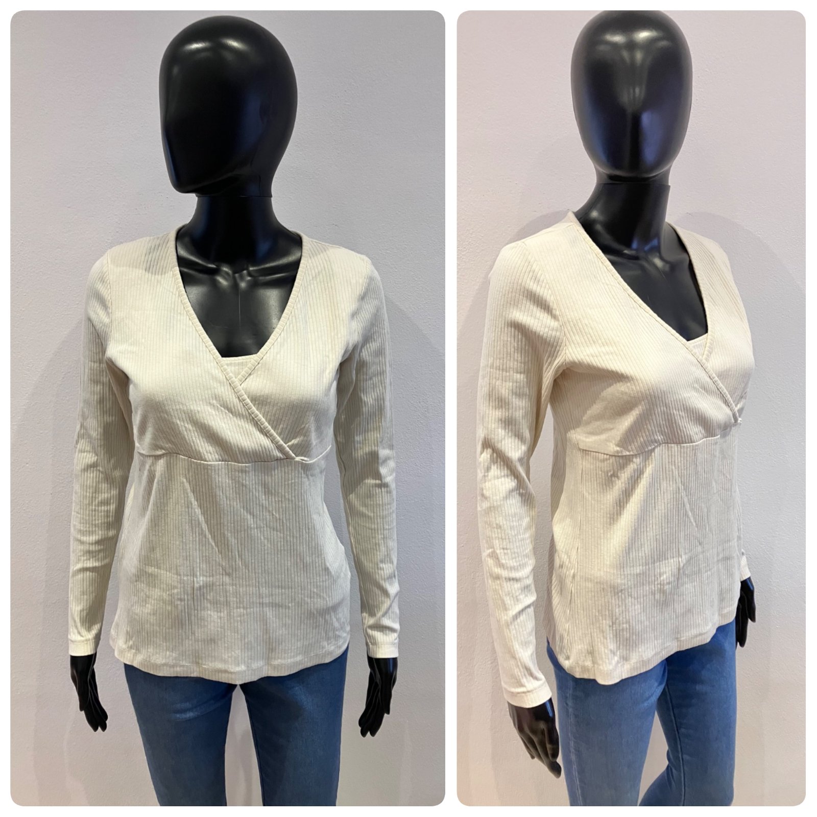 Dámske krémovo biele rebrované dojčiace tričko s dlhým rukávom, elastické, materiál 95%bavlna 5%elastan.