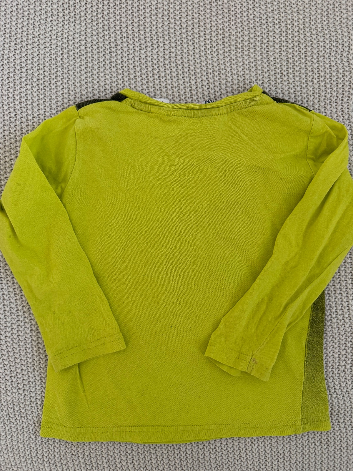 nosený, po mladšom synovi, 1 dierka - viď foto, na rukávoch slabé fliačky, dĺžka je 44 cm, šírka je 35 cm x 2 a rukáv od krku je 44 cm
