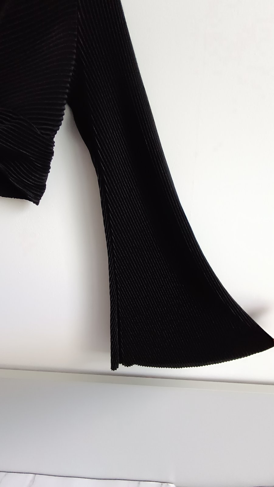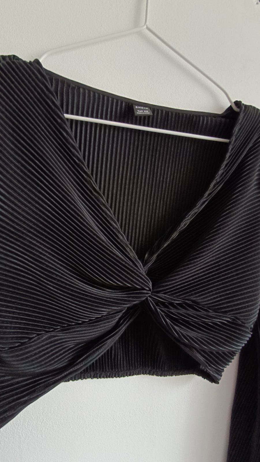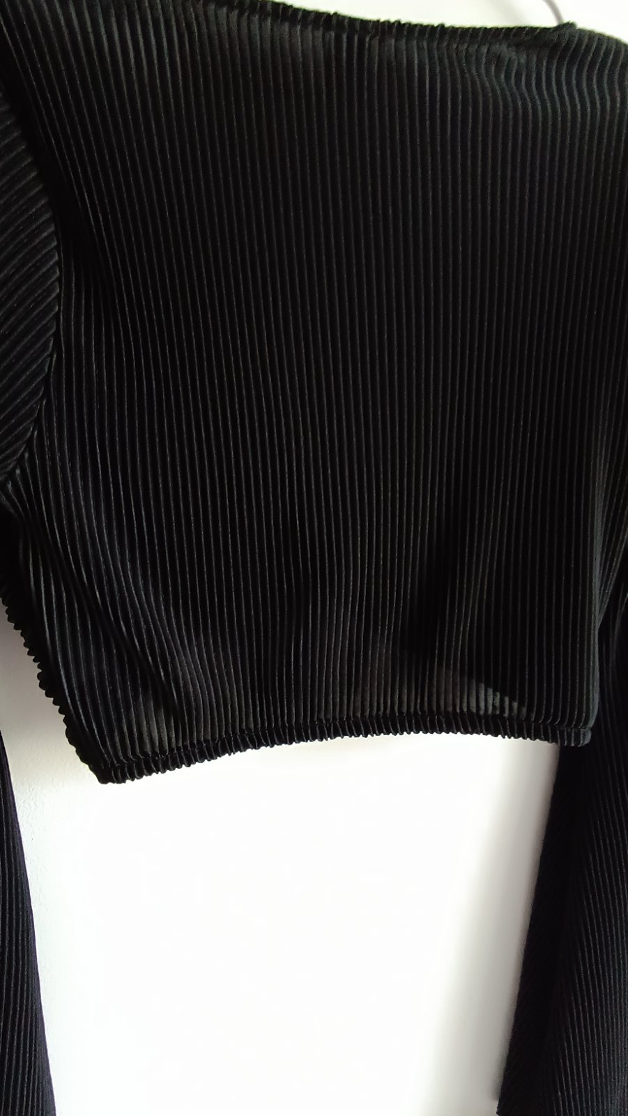 Vpredu zaujímavo riešený top, rukávy sa rozširujú, vhodné na leto, dĺžka 37 cm, na spodu všitá gumička, šírka 36cm, rukáv od pleca 64cm, 100% polyester