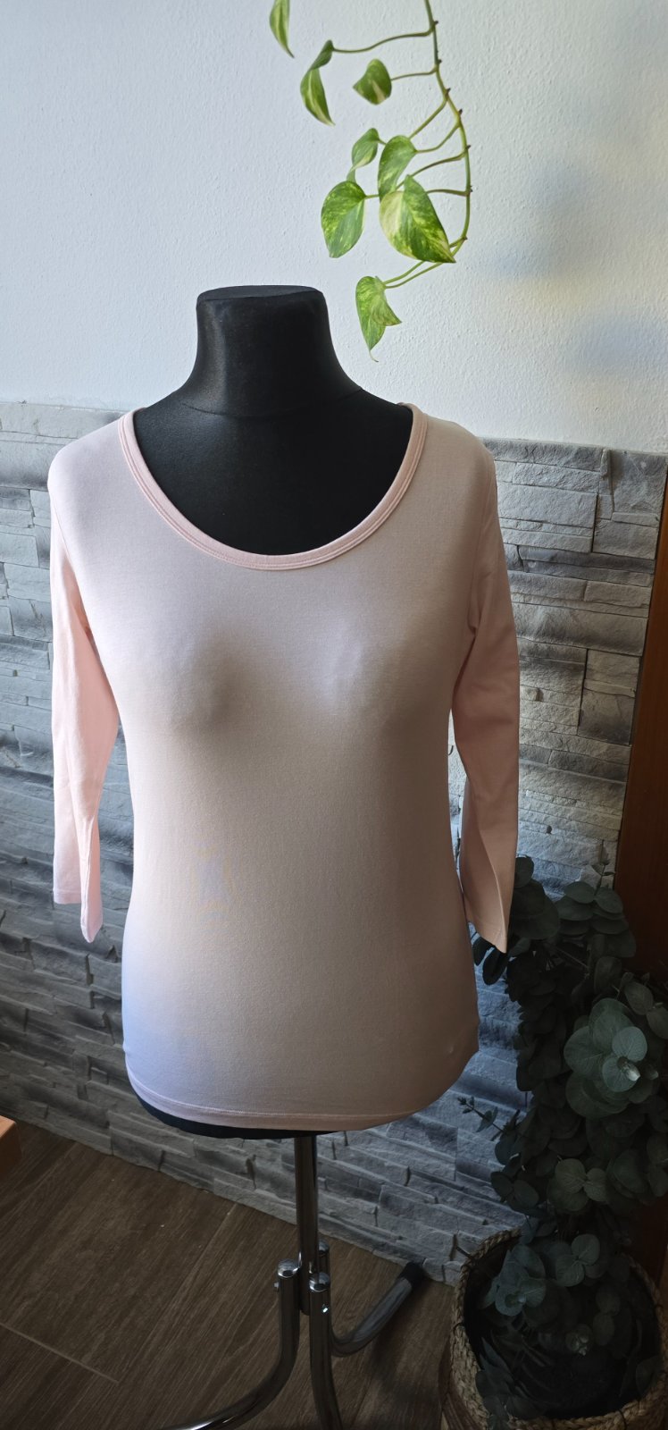 Nosene minimalne,bez poskodeni 100%viskoza 3/4rukavy, Tricko dolu stiahnute gumickou Farba nieco medzi cervenou a lososovou Mozem zmerat