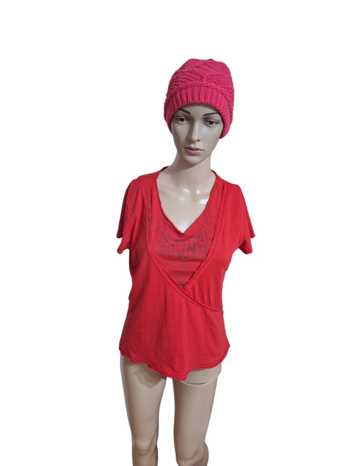 Dámske bavlnené značkové tričko. Je mierne elastické. Dĺžka je 55cm,obvod hrudníka je 86cm a obvod pása je 82cm. kód 1415A