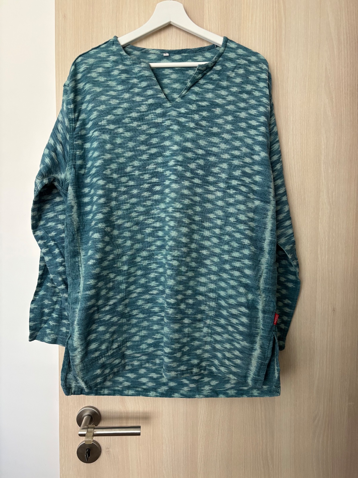Velkost pisana M, je vsak urcite vacsie, dlžka cca 70 cm, šírka cca 50 cm, rukáv meraný od ramena cca 63 cm.