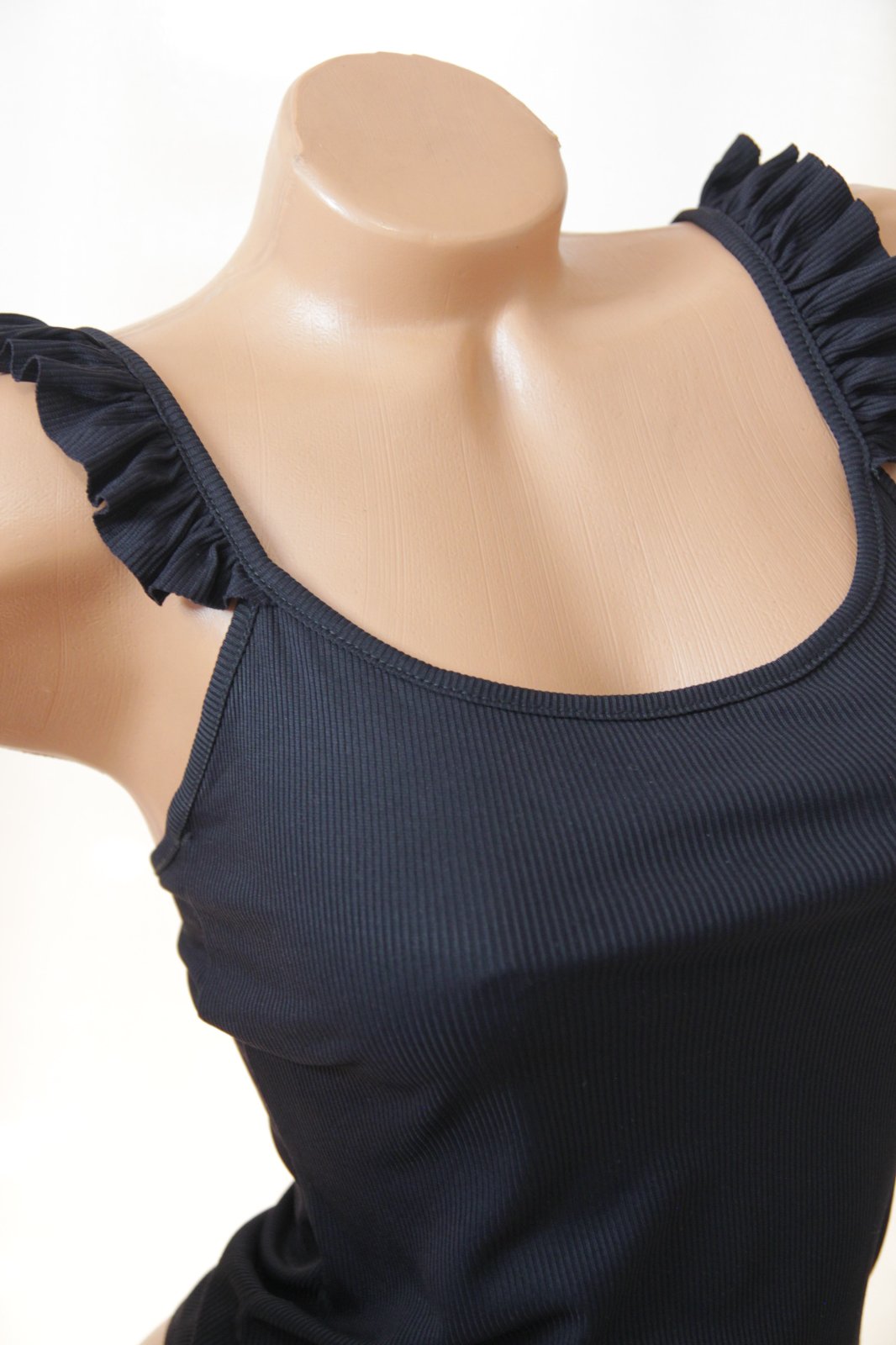 Čierny elastický body top s volánmi, značka Zara, veľkosť S. Top stav.