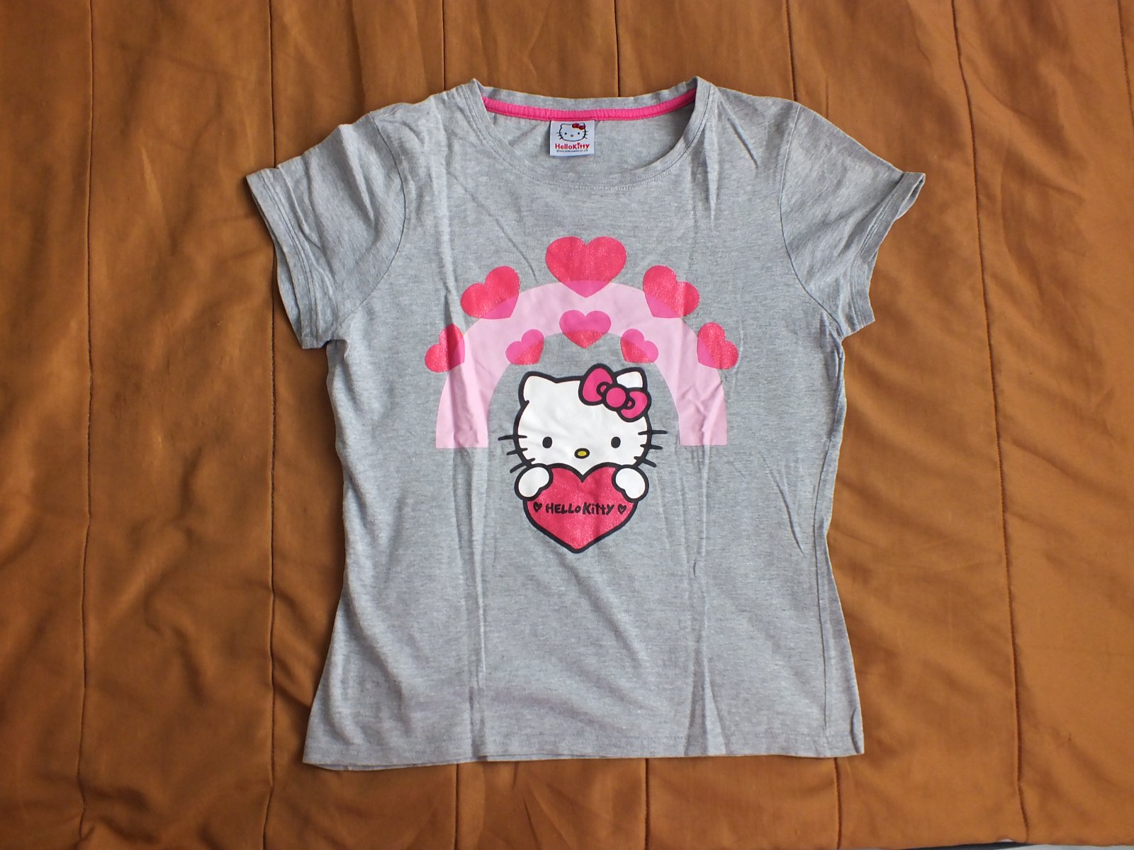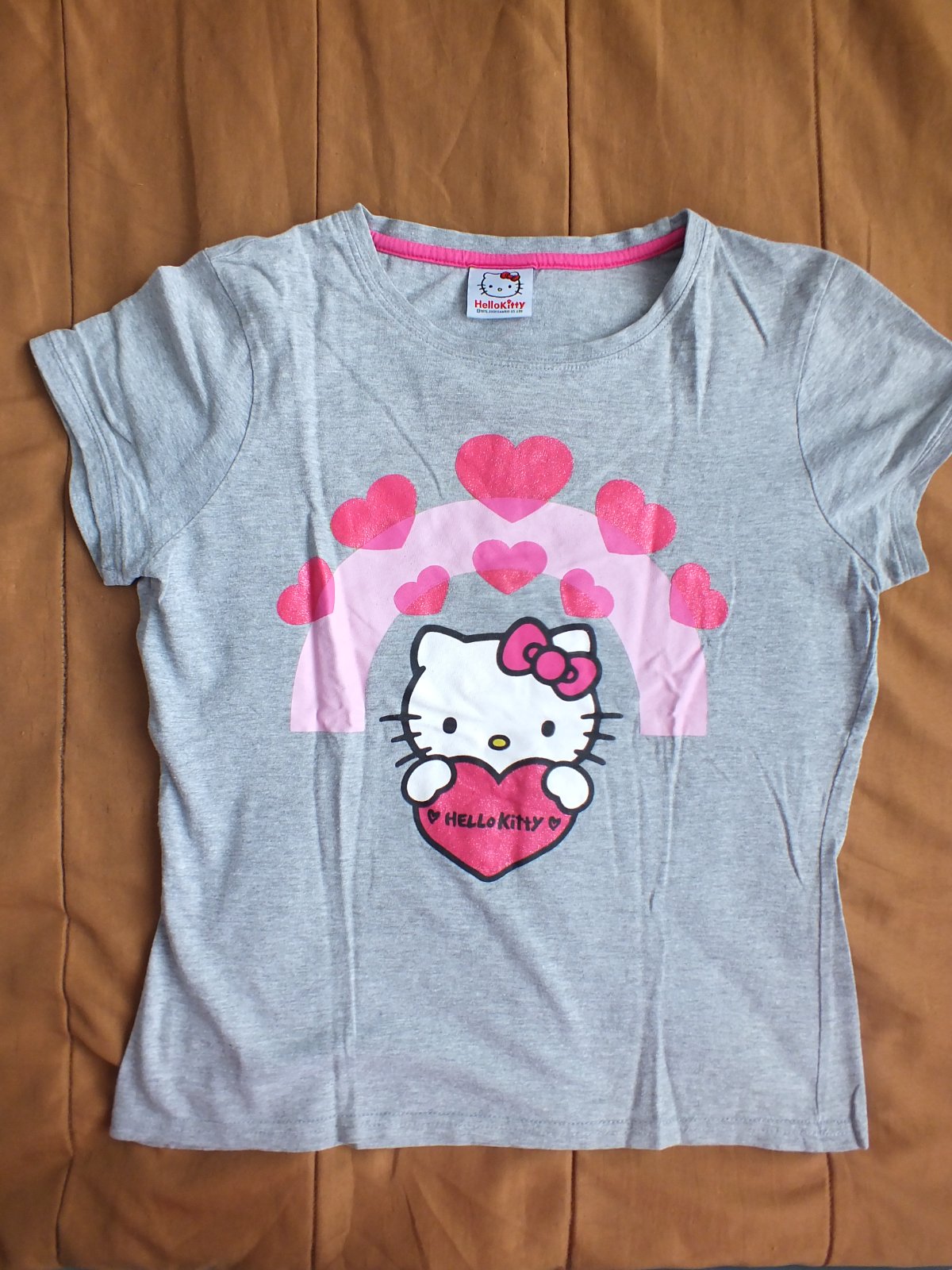 sivé dievčenské tričko,značka Sanrio,nosené,bez poškodenia,,veľkosť 12 rokov,dlžka 55 cm,obvod pod pazuchami 43 cm x 2,cena spolu 4,0€ + poštovné