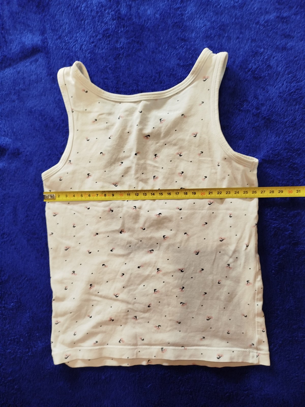 predám tričko z UK, žiadne poškodenie až na dva jemné 1mm fliačiky , vyznačené dĺžka - 56cm, šírka - 41cm, pás - 34cm, spodok - 42cm,