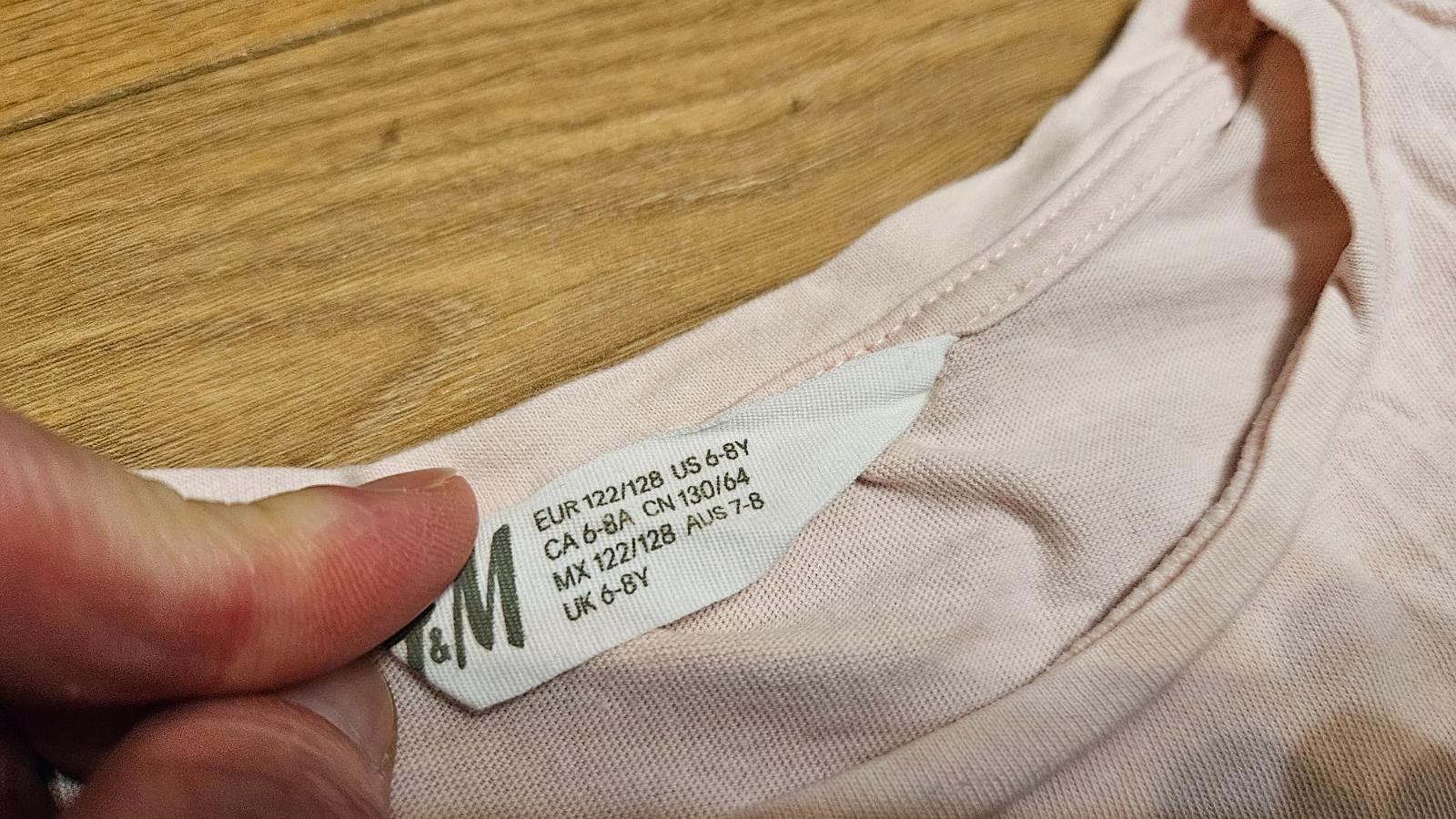 Tričko zn. H&M, veľkosť 122-128, kupované nové, parkrat oblečené, vo veľmi dobrom stave. Mám 2 rovnaké kusy. Rozmery a zloženie na fotkách.