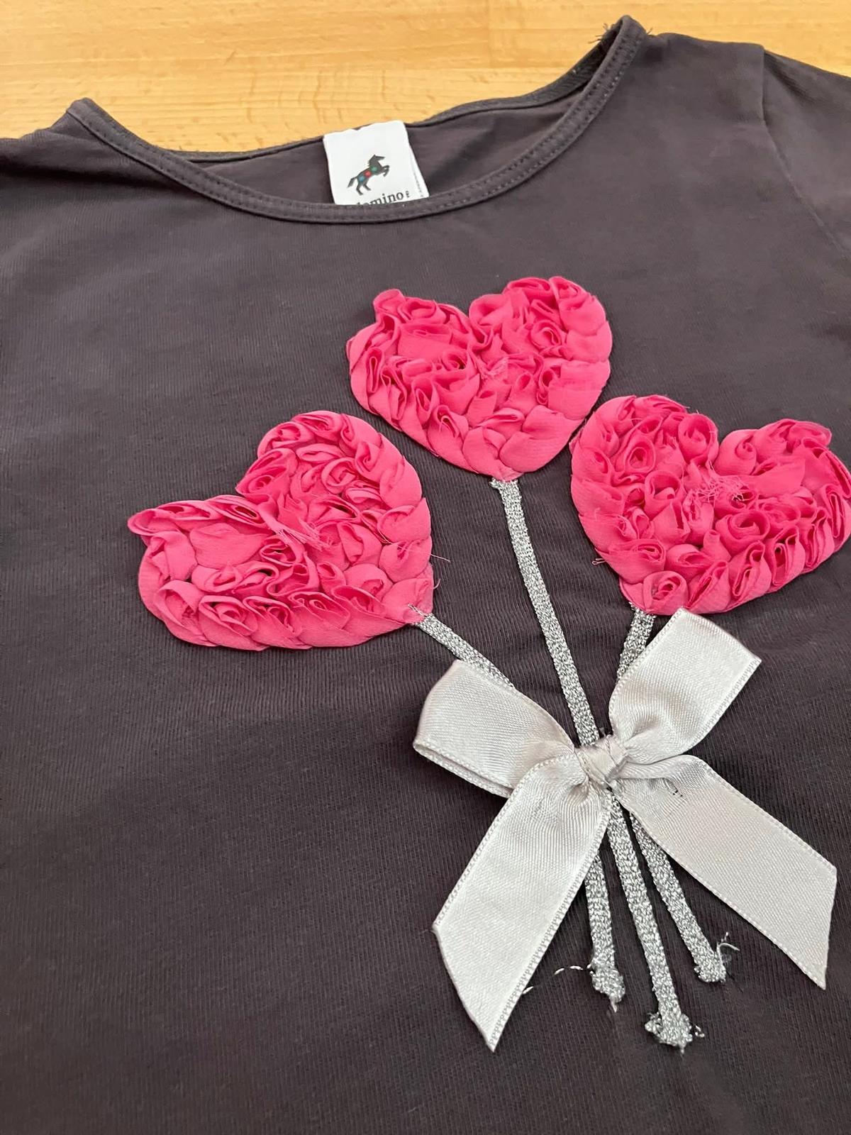 Dievčenské tričko, veľkosť 116, dĺžka 42 cm, šírka 30 cm, rukáv od krku 46 cm.