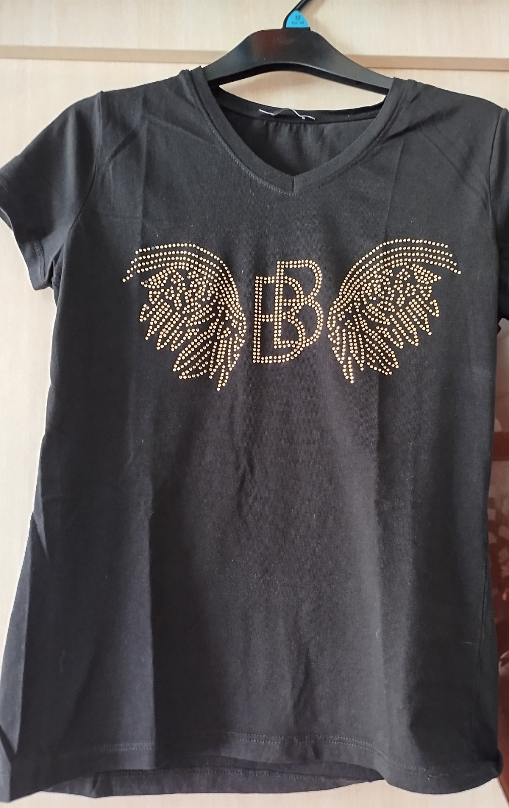 Dámske tričko v top stave ako nové. Farba krásna sýto čierna, na foto je trošku svetlejšie. Odporúčam.