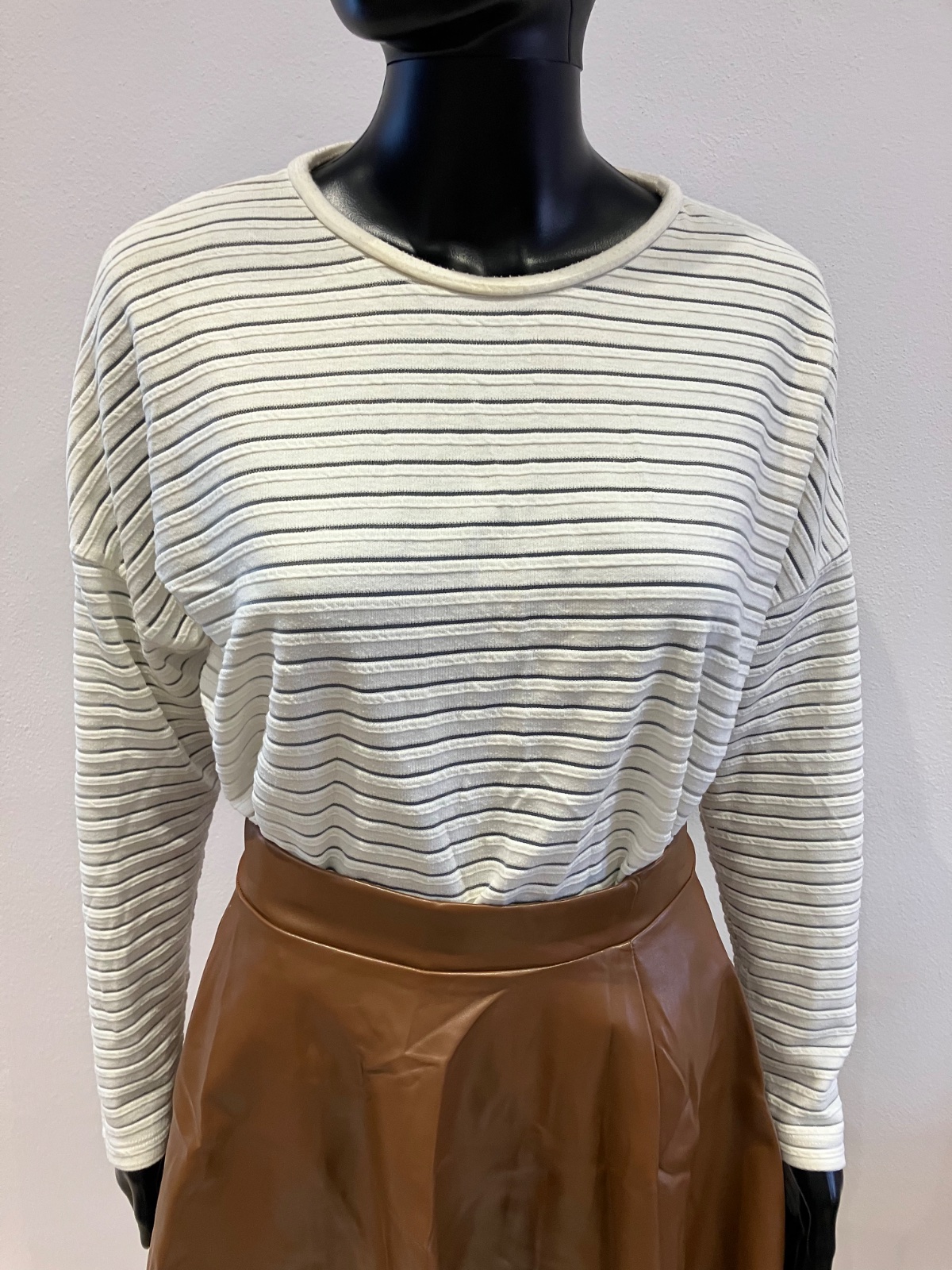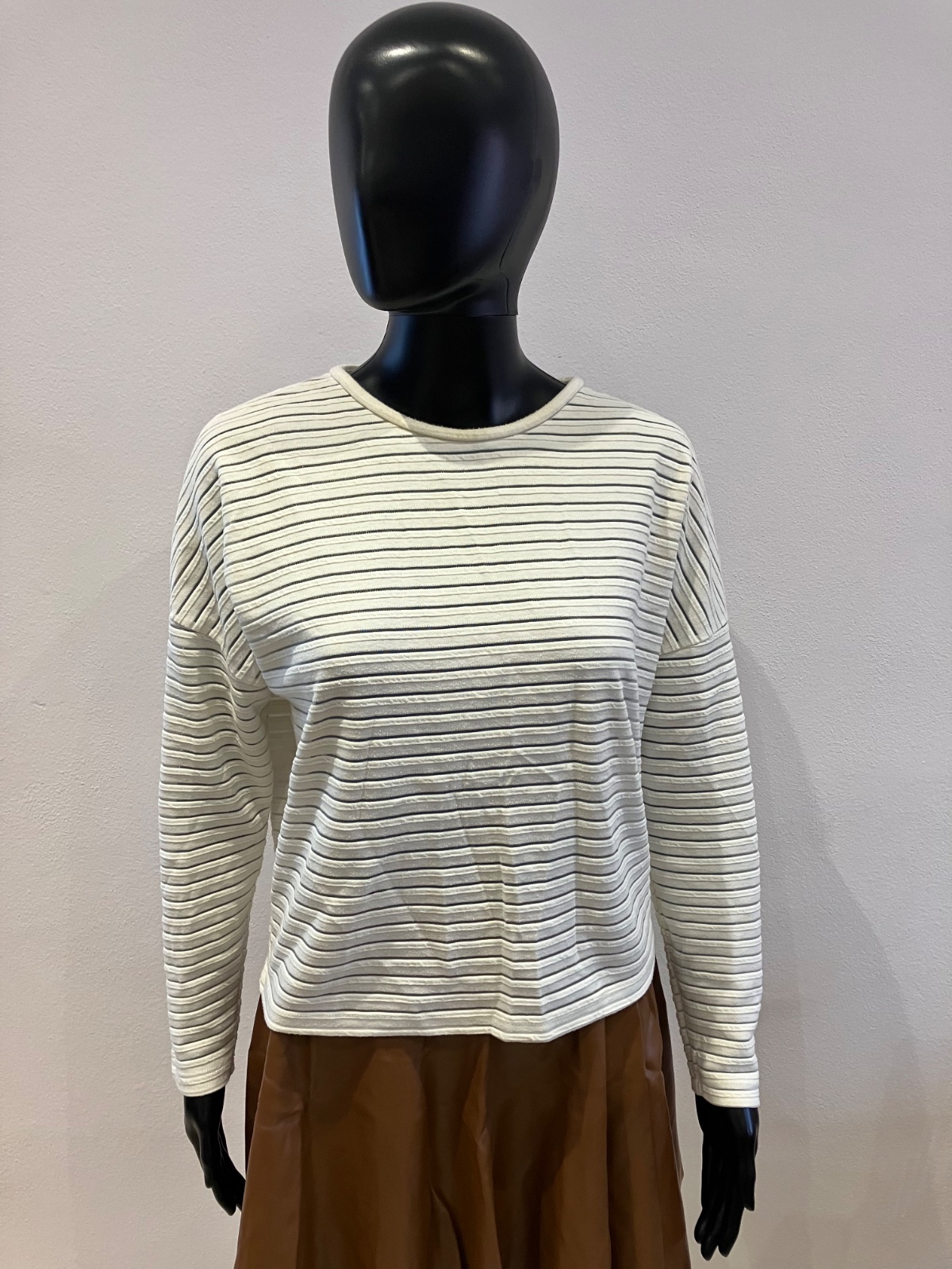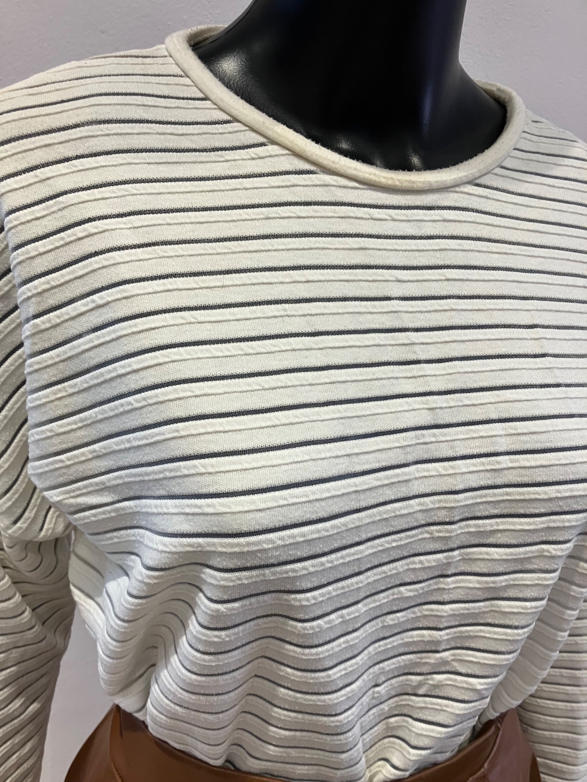 Dámske tričko s dlhým rukávom, mikinové, elastické, okrúhly výstrih. Pásiky sú priesvitné.