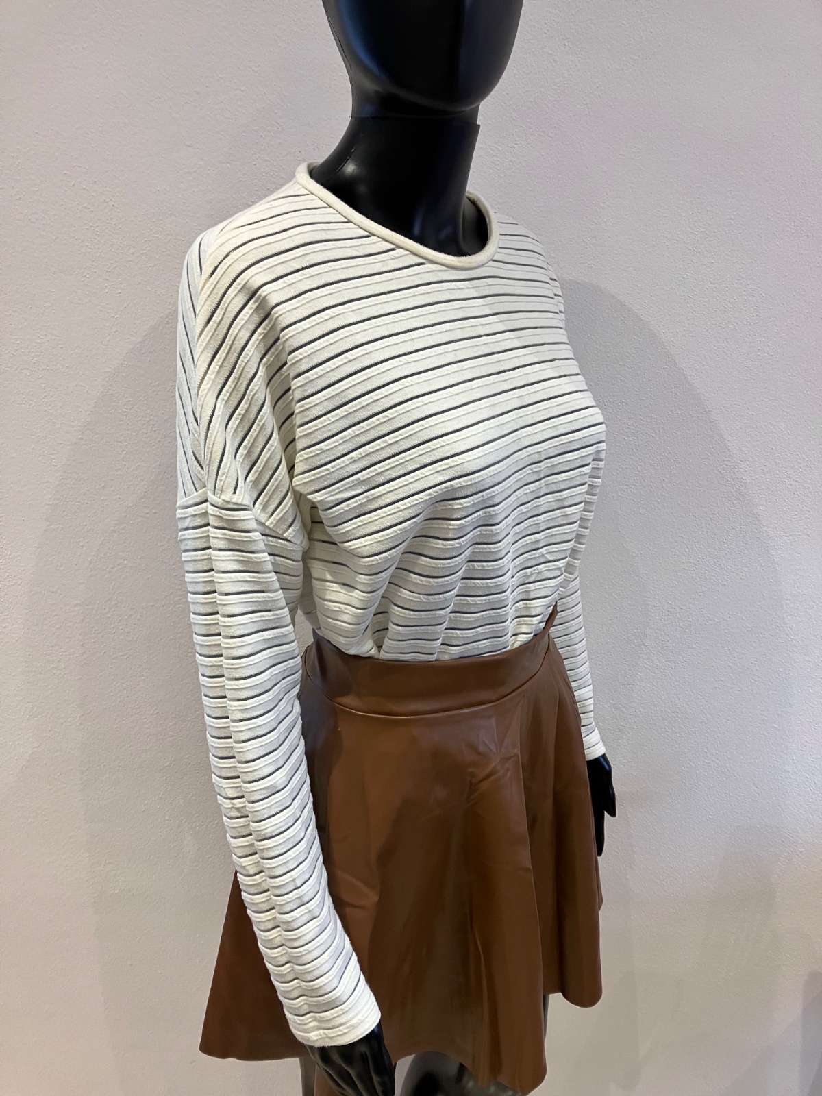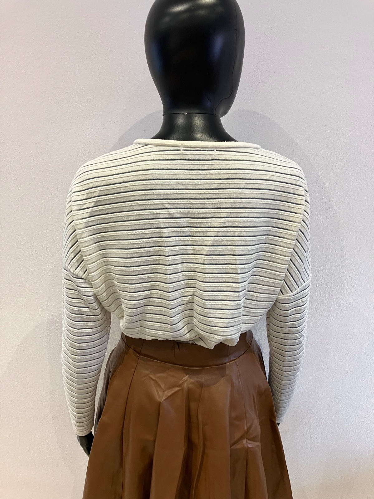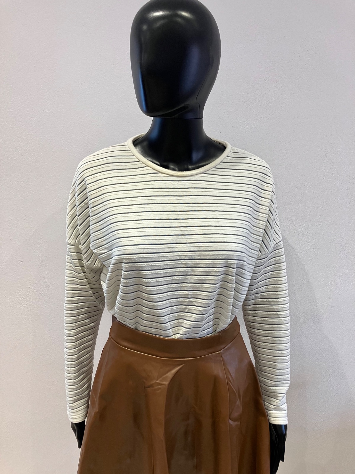 Dámske tričko s dlhým rukávom, mikinové, elastické, okrúhly výstrih. Pásiky sú priesvitné.