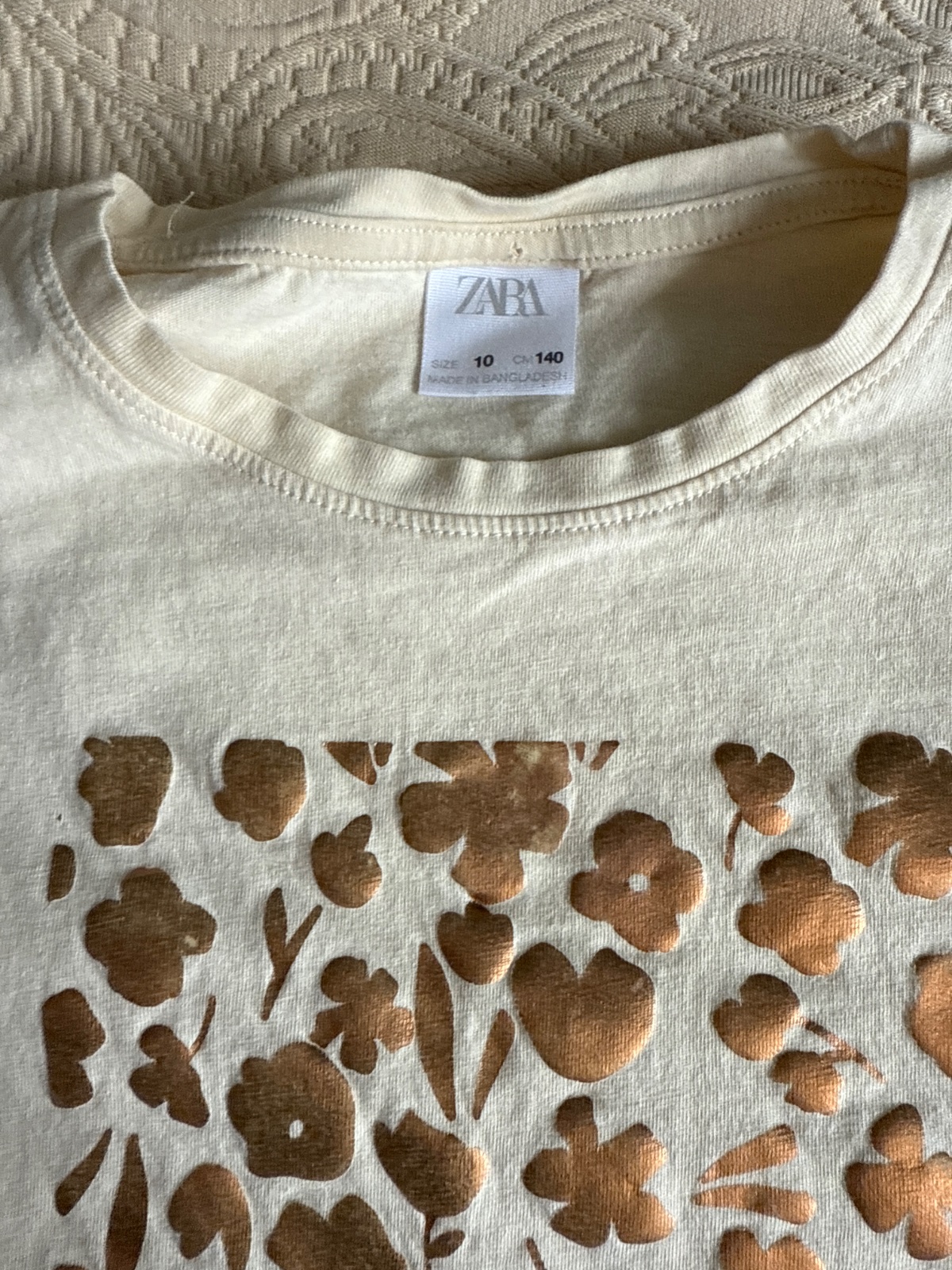 Krémové tricko so zlatou aplikáciou, veľmi dobrý stav.
