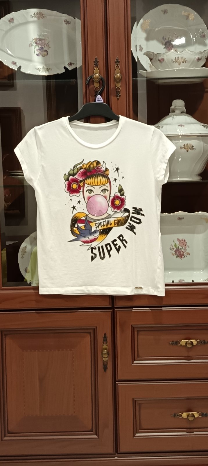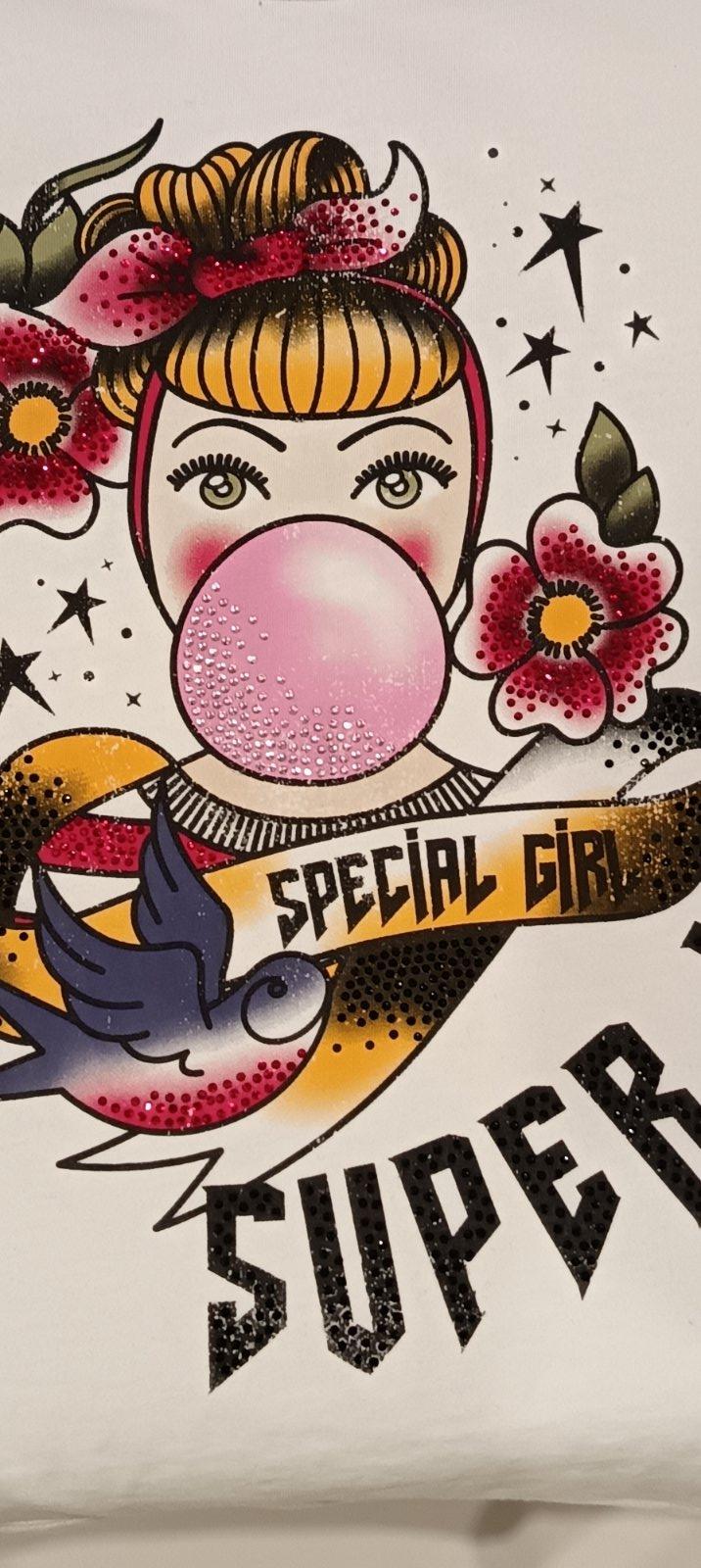 Prekrásne jemnučké snehobiele tričko s krásnym kamienkovým motívom, dolu zlaté kovové logo s kamienkom, 95% bavlna, 5% elastan, super stav.