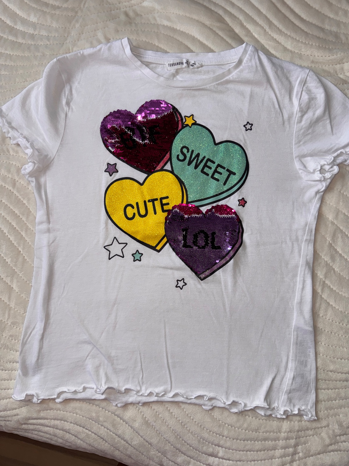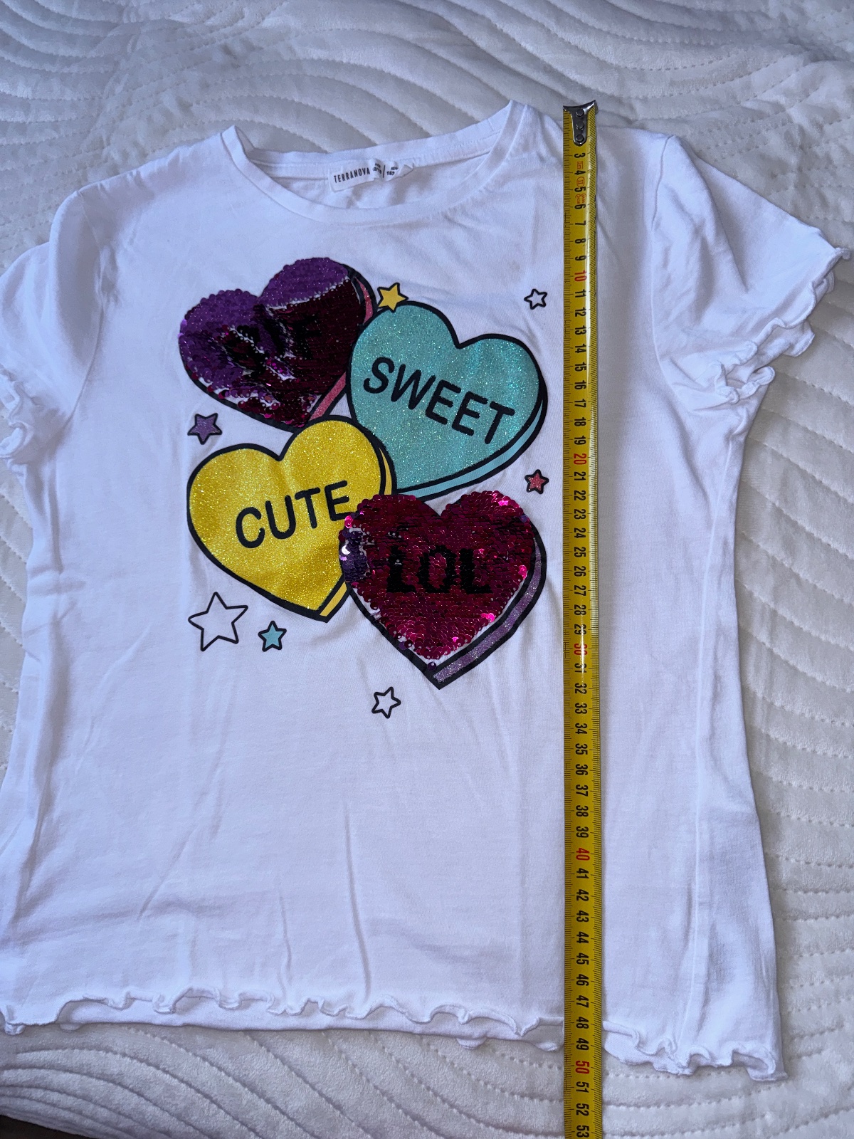 Krásne tričko 2x oblečené, oficiálna veľkosť 152-158, čo v terranove nesedí, tak podľa mna 146. Flitre sa menia. Kvalitne.