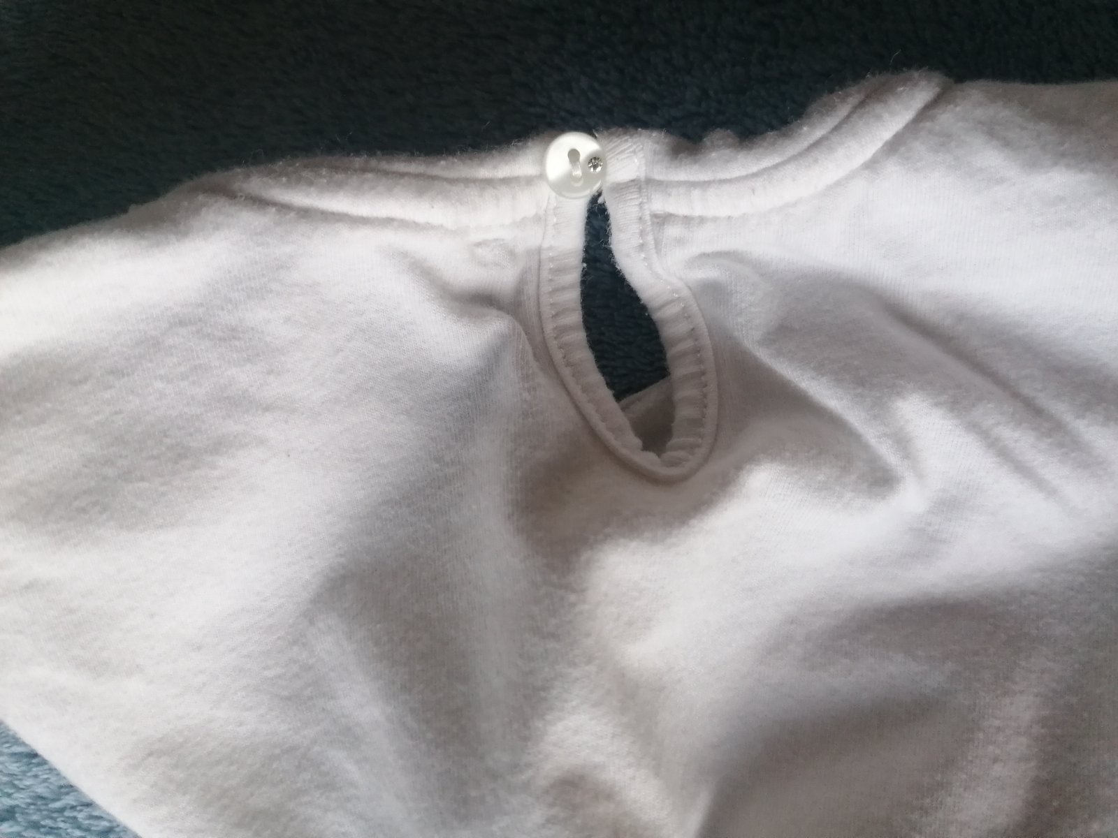 Bavlnené tričko, zapínanie na cvoky na ramene pre ľahšie obliekanie, má malý fliačik - zohľadnené v cene. Dĺžka 37cm.
