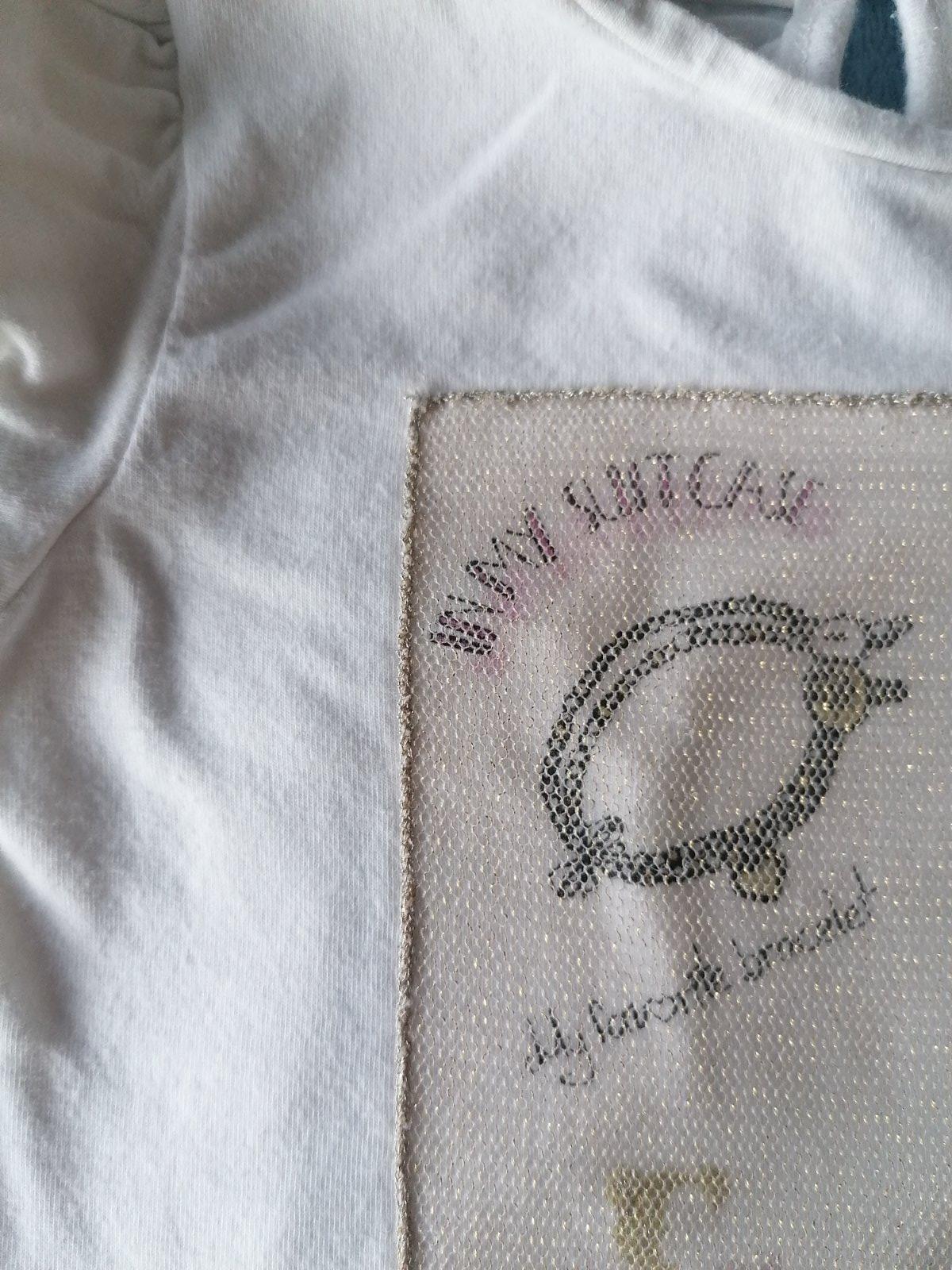 Pekne dievčenské tričko, nosené, vpredu bola asi nejaká aplikácia je to odtrhnuté a je tam dierka, darujem k nákupu