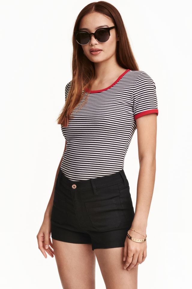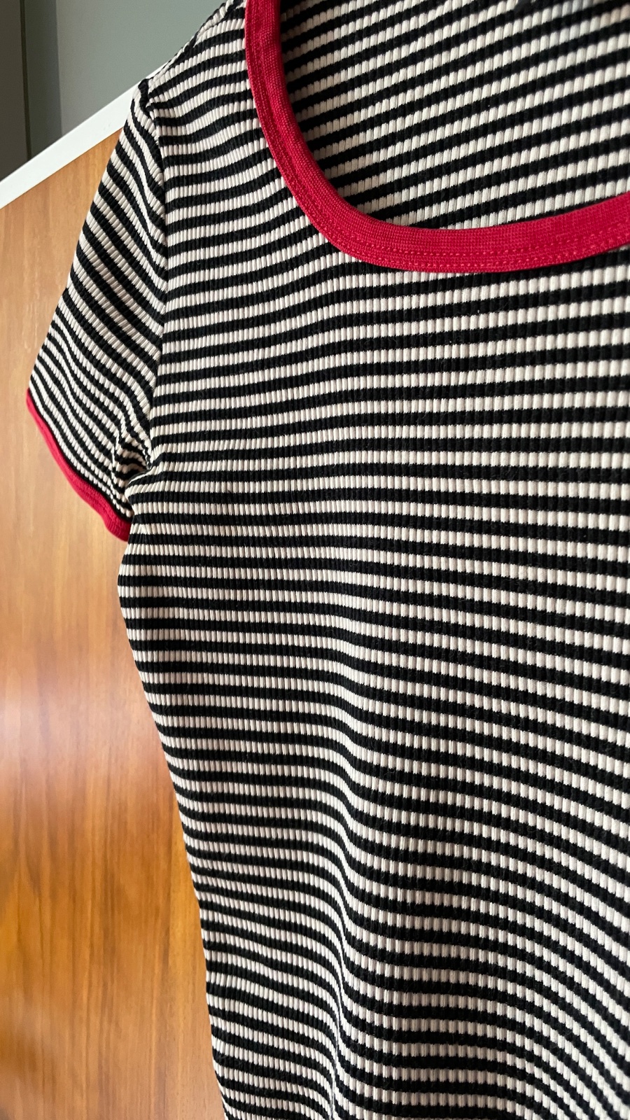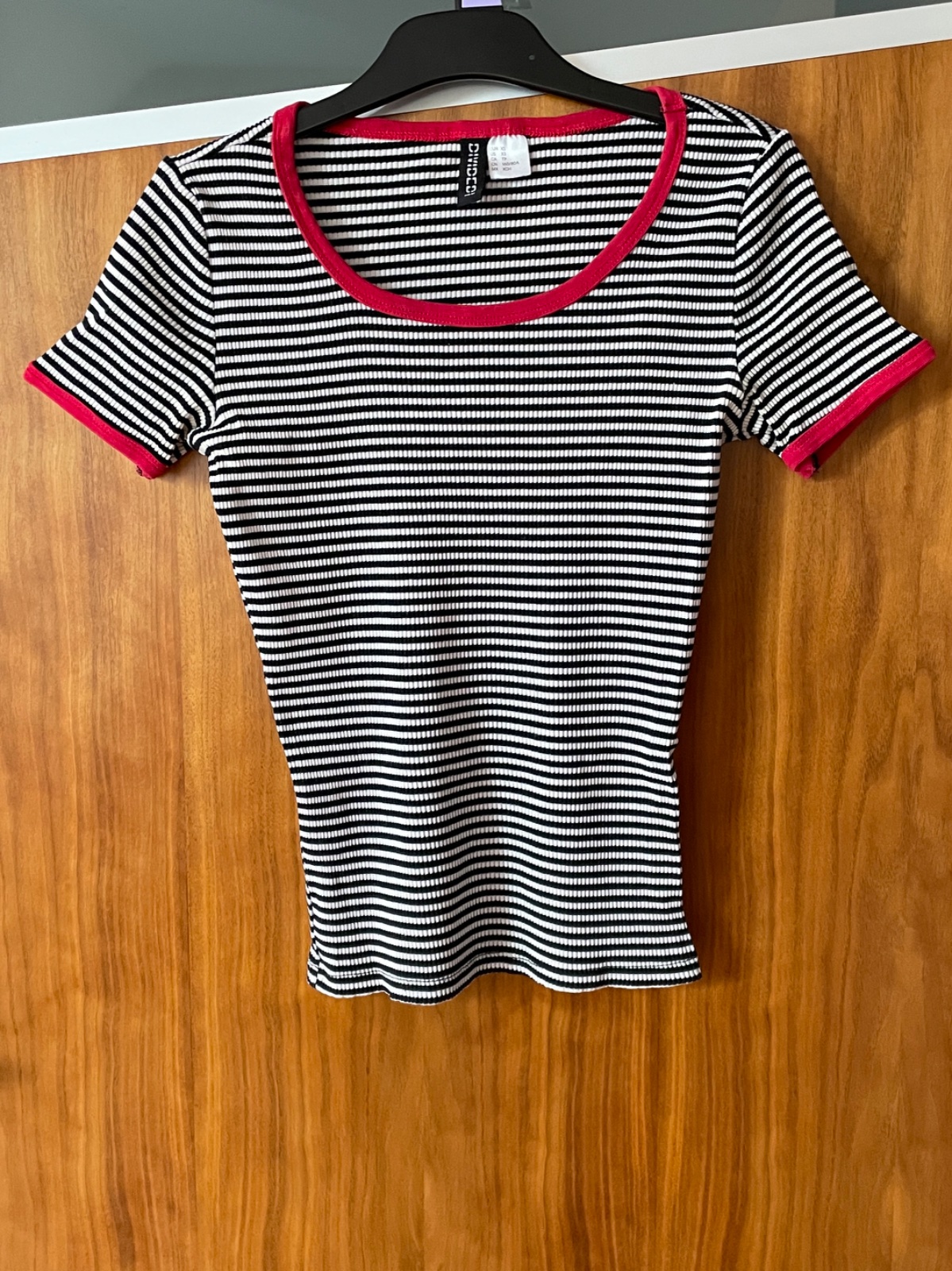 H&M Rebrované pásikavé červený lem kontrastný 34
