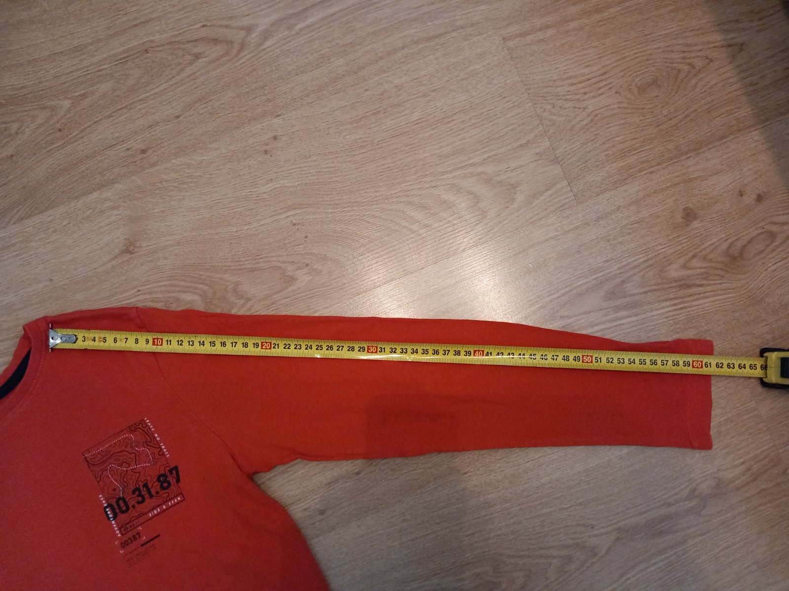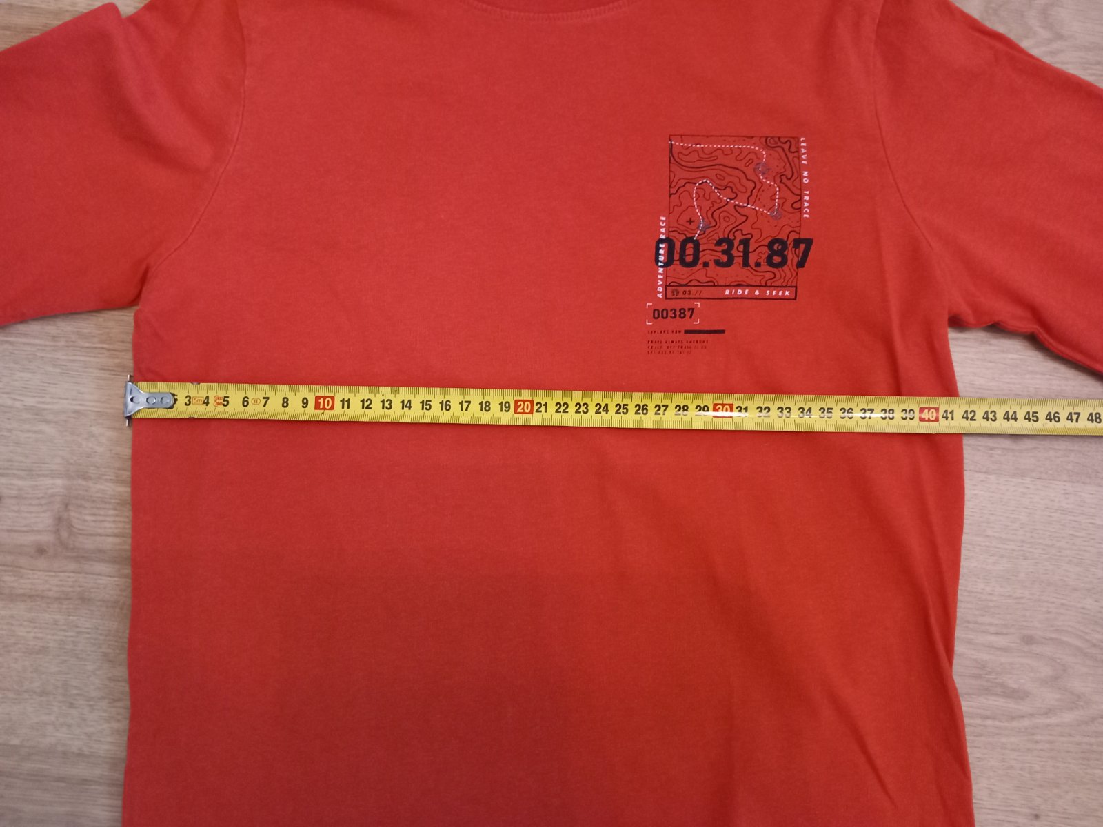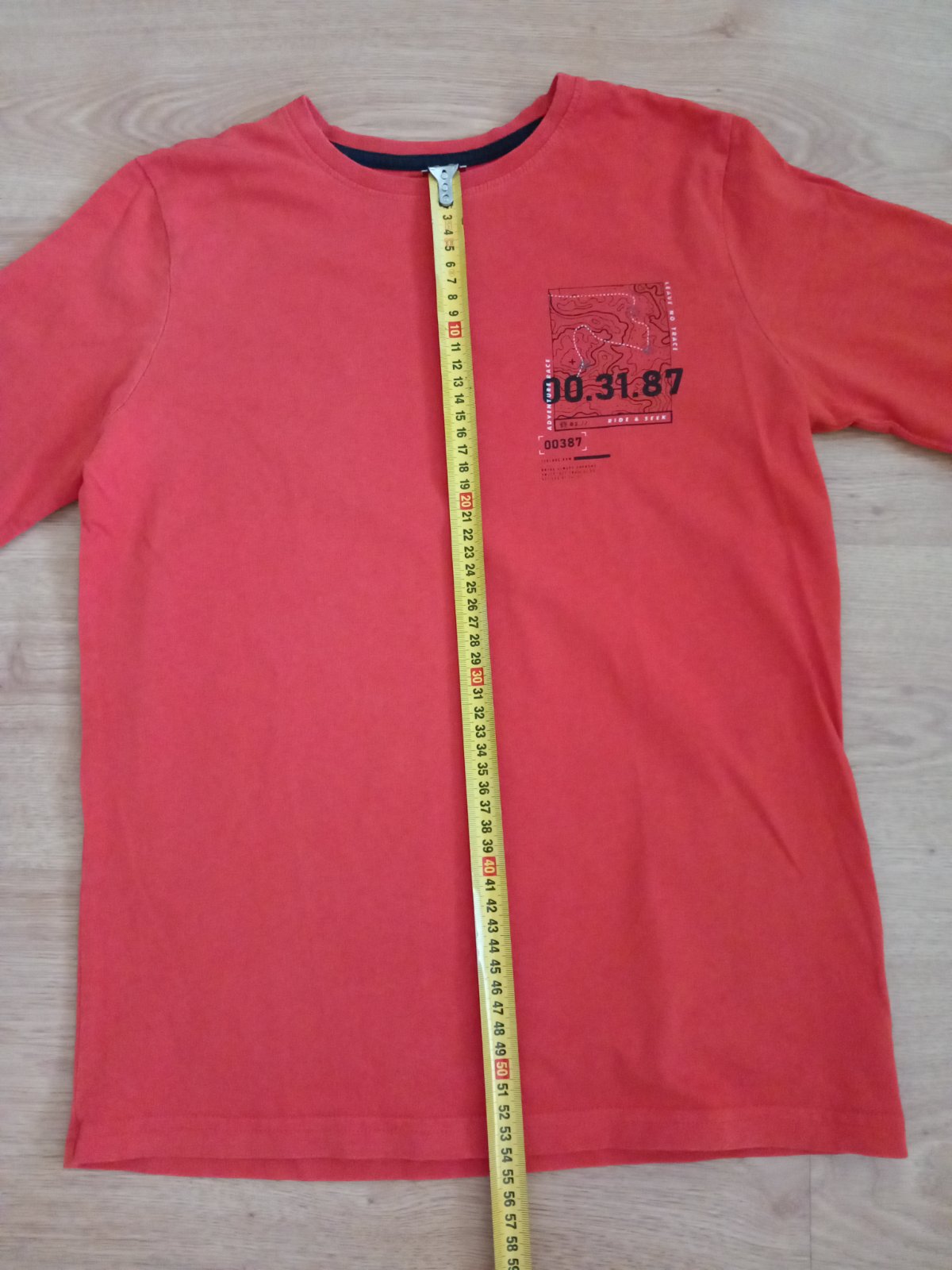 Predám chlapčenské tričko s dlhým rukávom. Veľkosť 146-152. Bez poškodenia. Rozmery nafotené. Farba je skôr taka tehlová.