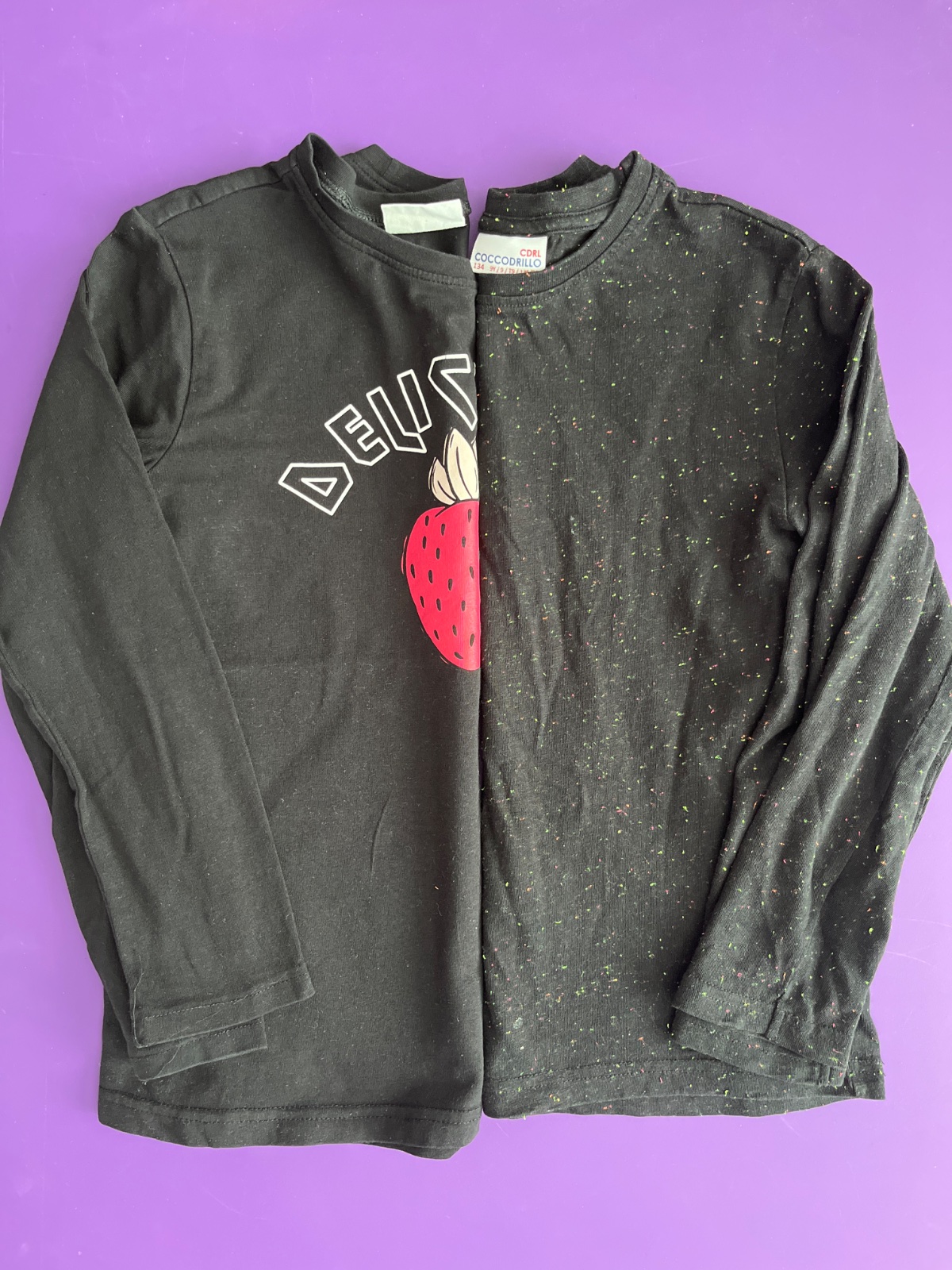 ... cena spolu. Predám čierne bavlnené tričká vo veľmi dobrom stave. Čierna farba je skreslená fotoaparátom, v skutočnosti vyzerá lepšie; jahôdková aplikácia je v top stave. Melírované je trocha užšie, inak sú rovnakej veľkosti.