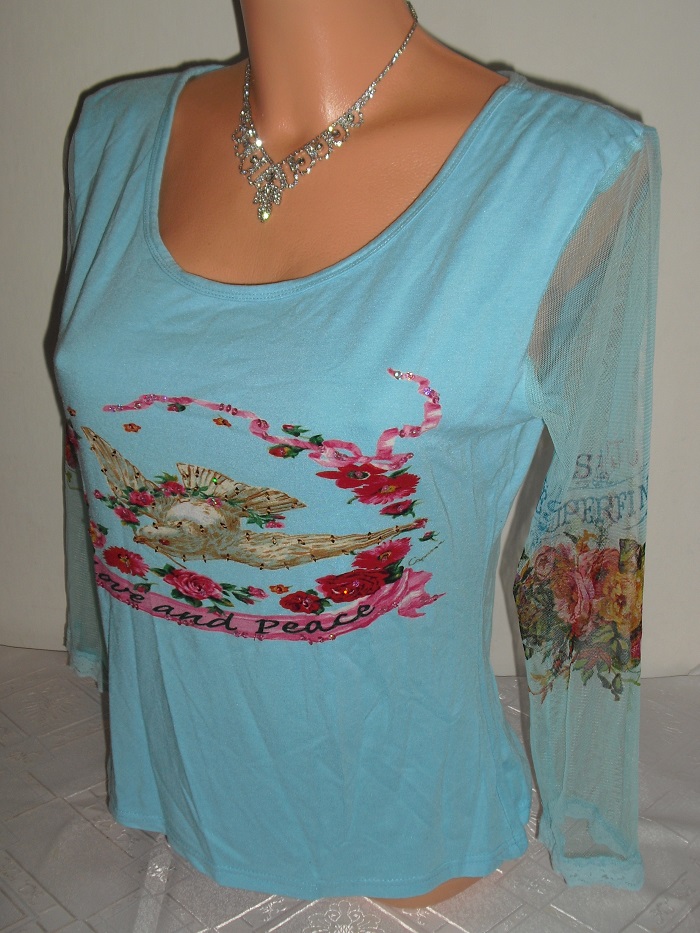 predam nadherny topik, bavlneny, znackovy capricorn, topik je dobry stav, treba len preprat lezal ulozeny komode. rukavy ma zdobene aj s krajkami, elasticky, velkost uvedena m. na predu je zdobeny flitrikmi. sirka 45,5 cm x 2 az 52 cm x 2, dlzka 53 cm.