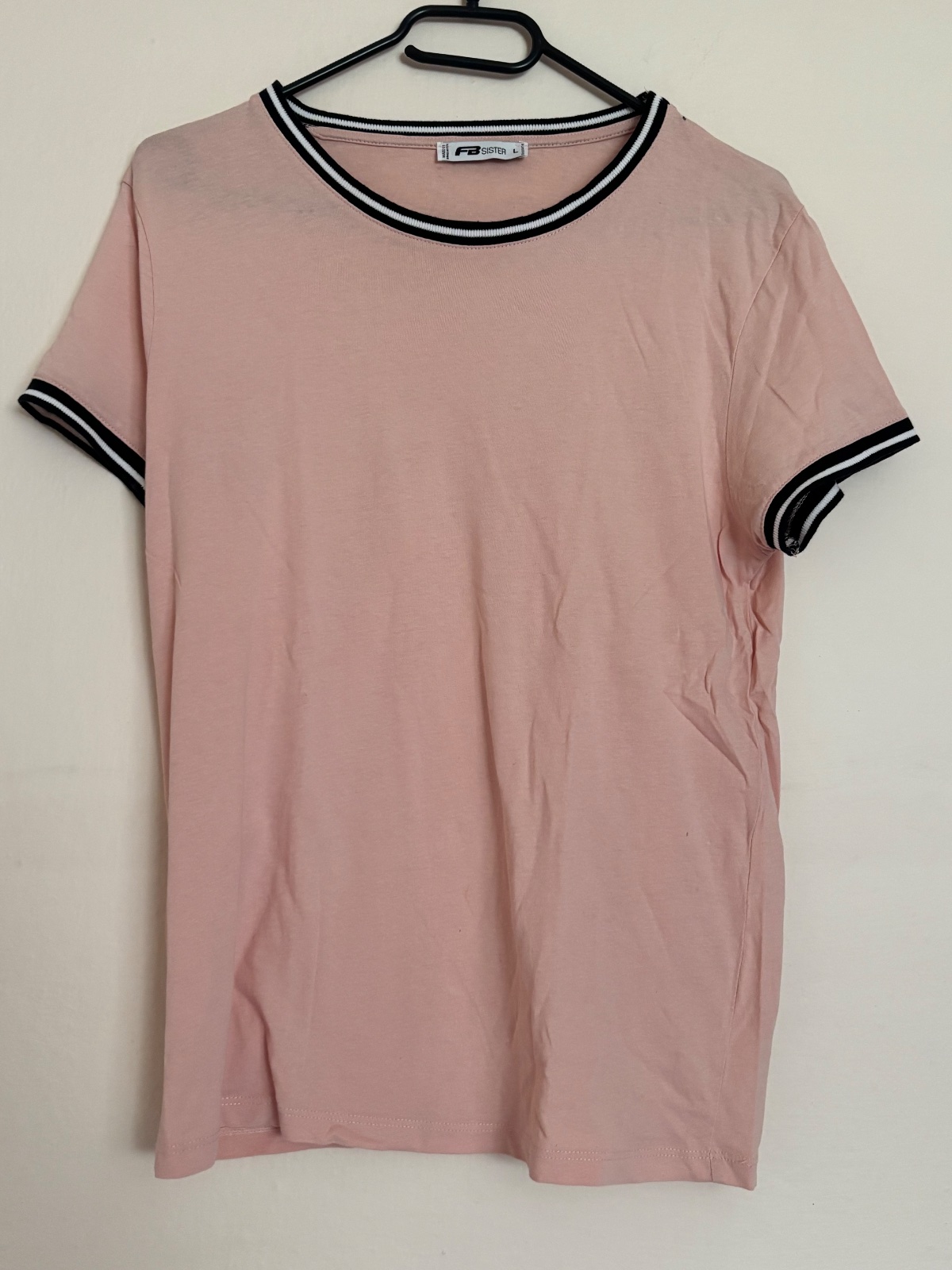 nosene minimalne, staroruzova farba, ciernobiely pasik,prijemny material, velkost pisana L, ale povedala by som ze M
