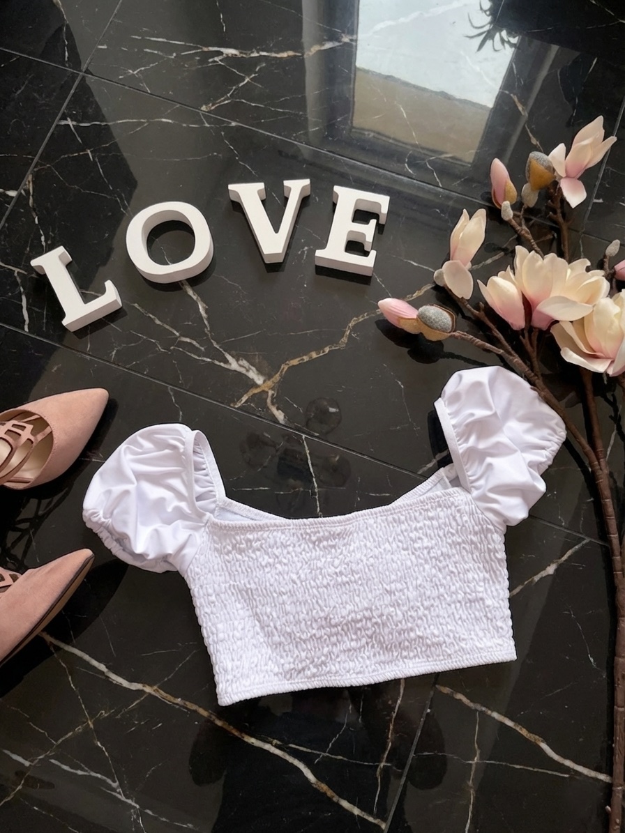 Štýlový riasený top, elastický, snehovobiela farba, oblečený asi 3x na dovolenke, bezchybný stav.