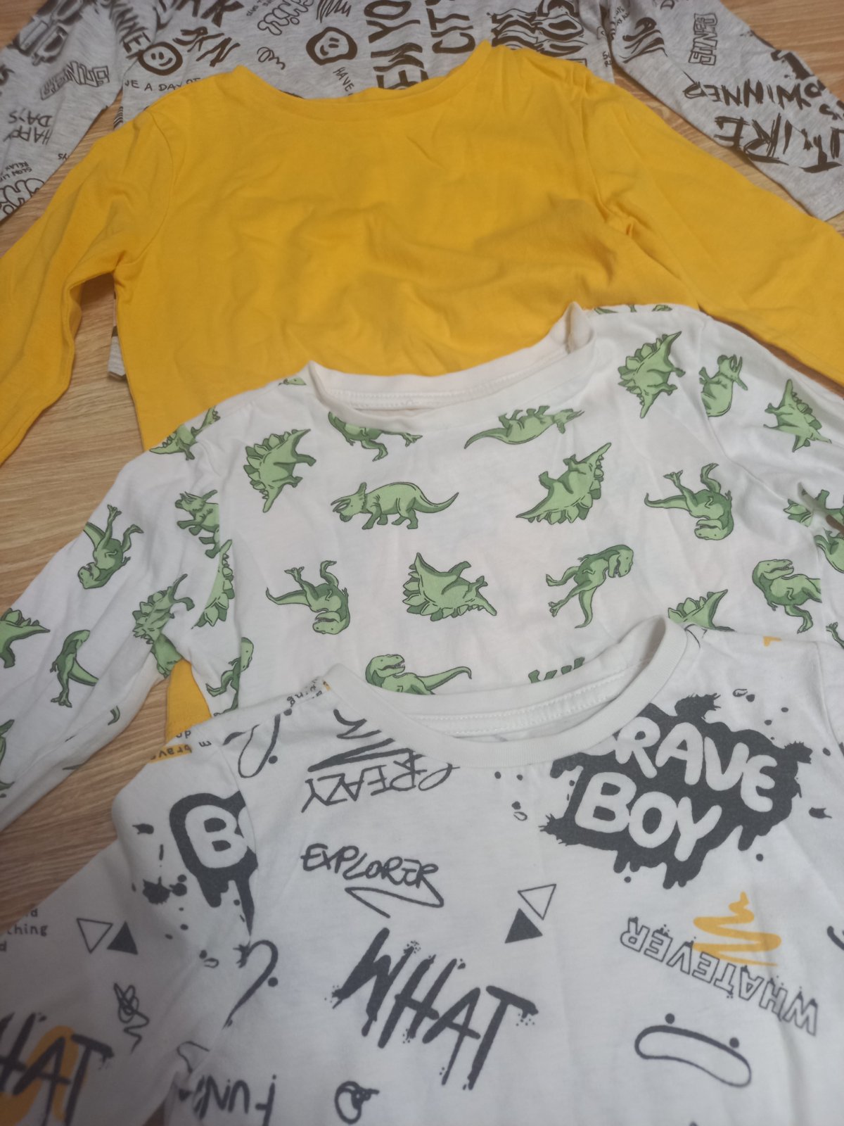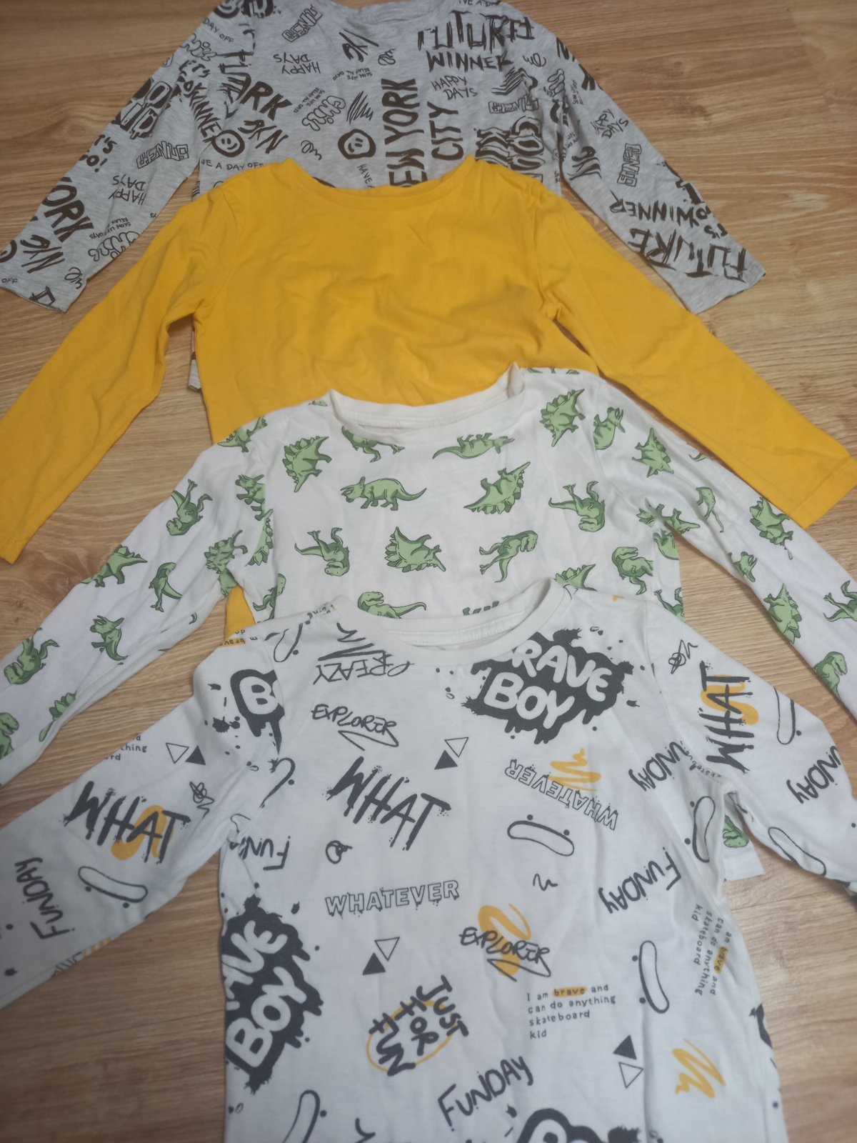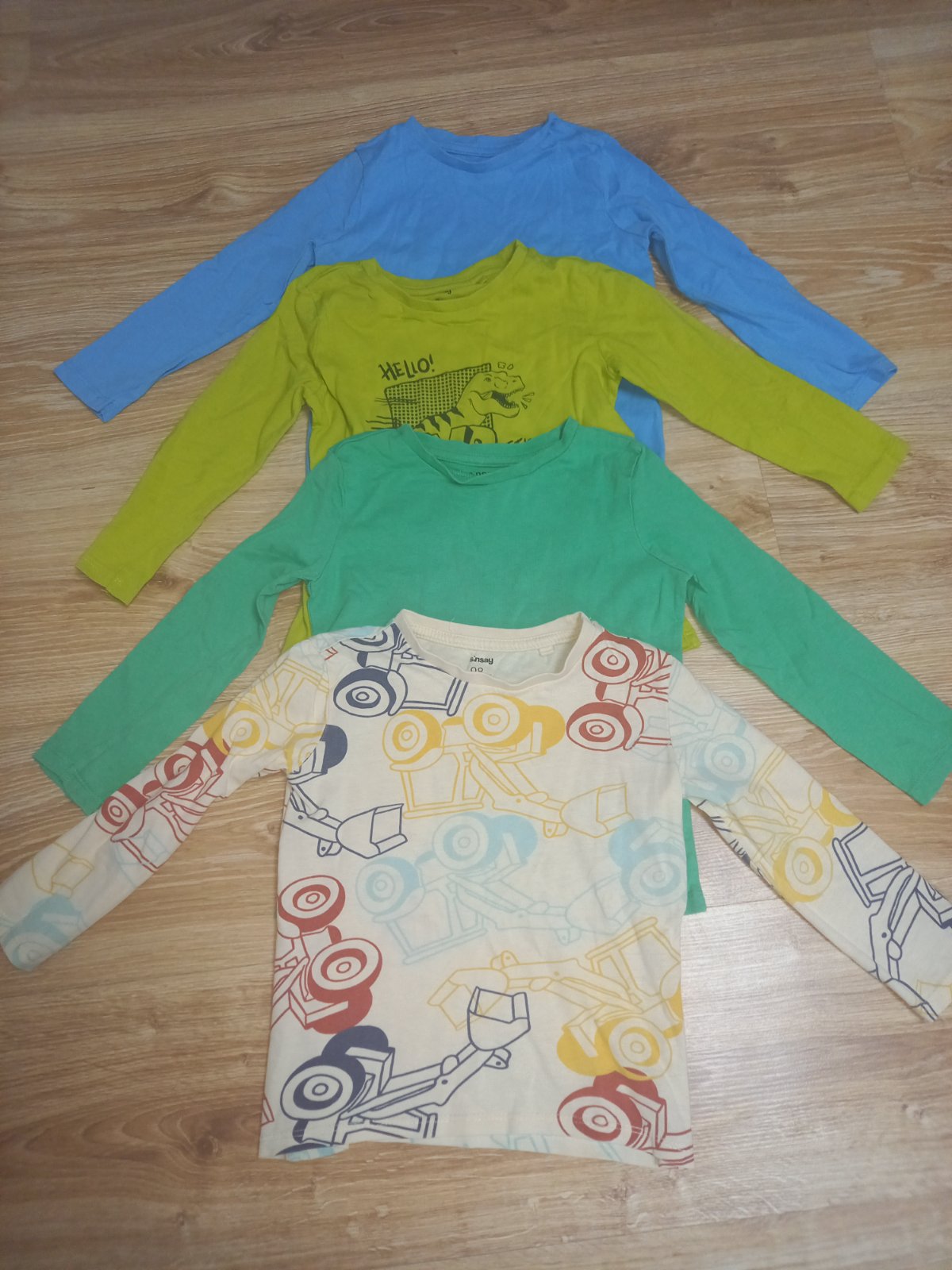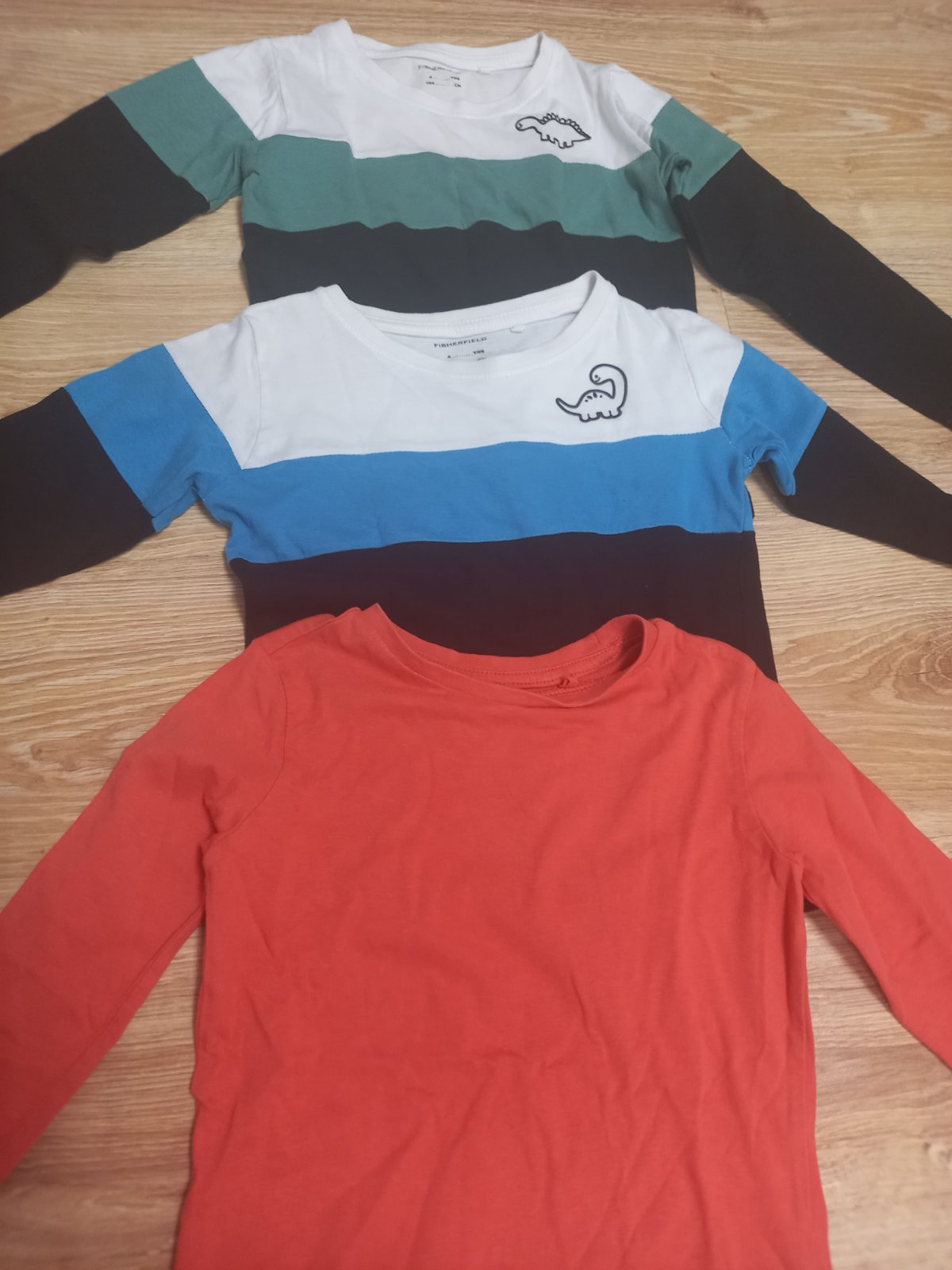 Predám tričká s dlhým rukávom 4 kusov + 1 tričko s krátkym rukávom. Nemajú fľaky. Veľkosť 98 má Halloween tričko, zelené a dole sivé s krátkym rukávom. Veľkosť 104 má tmavomodré a paw patrols. Cena...
