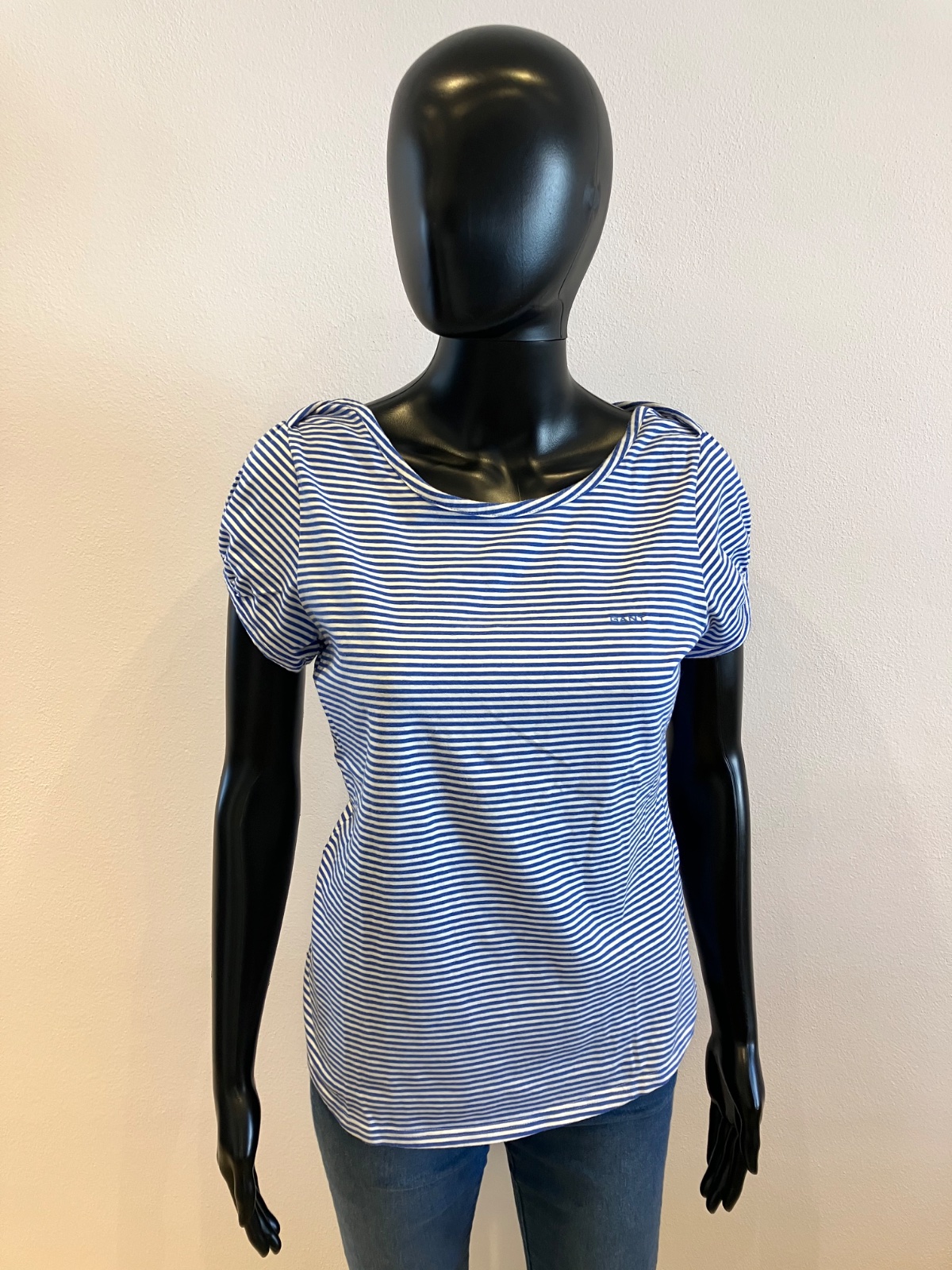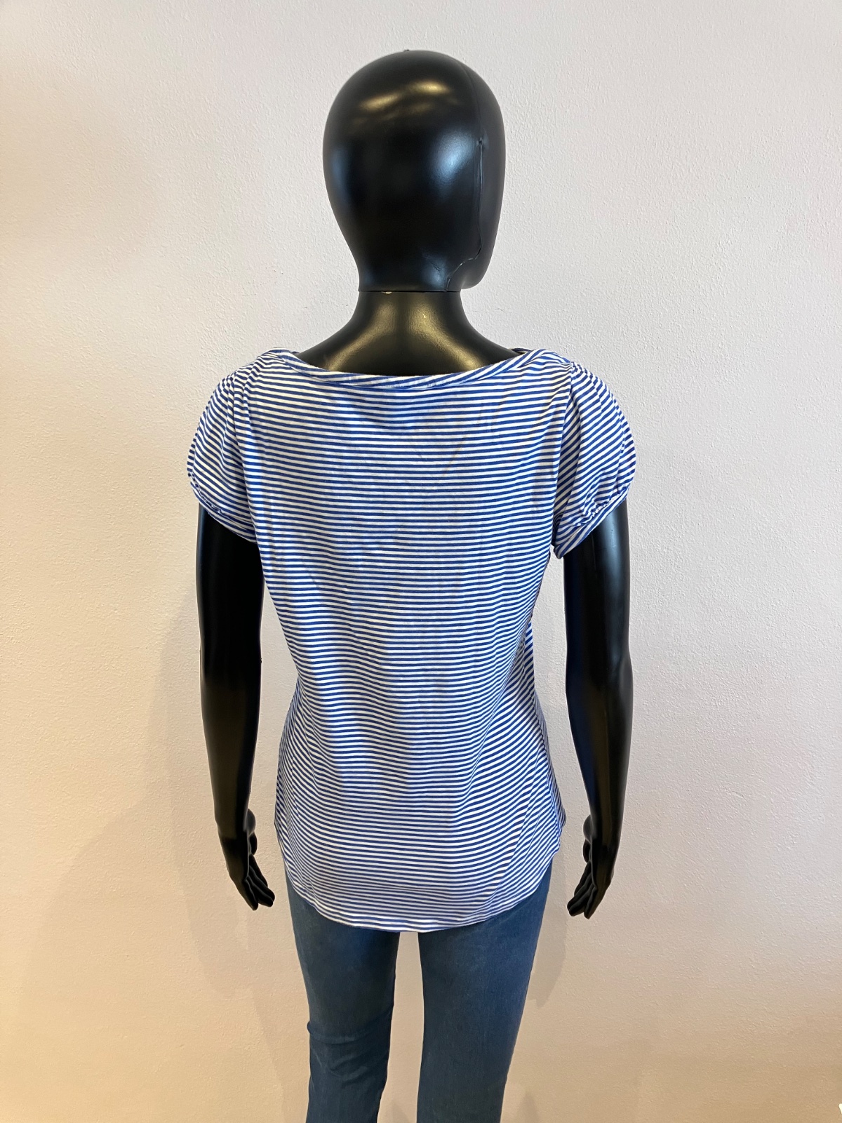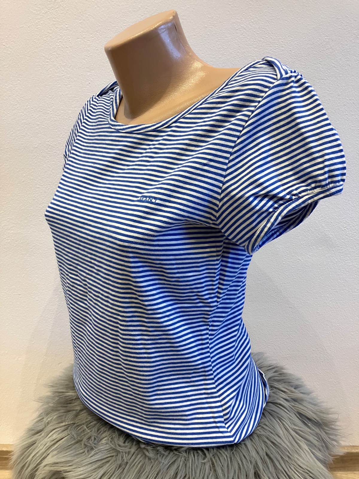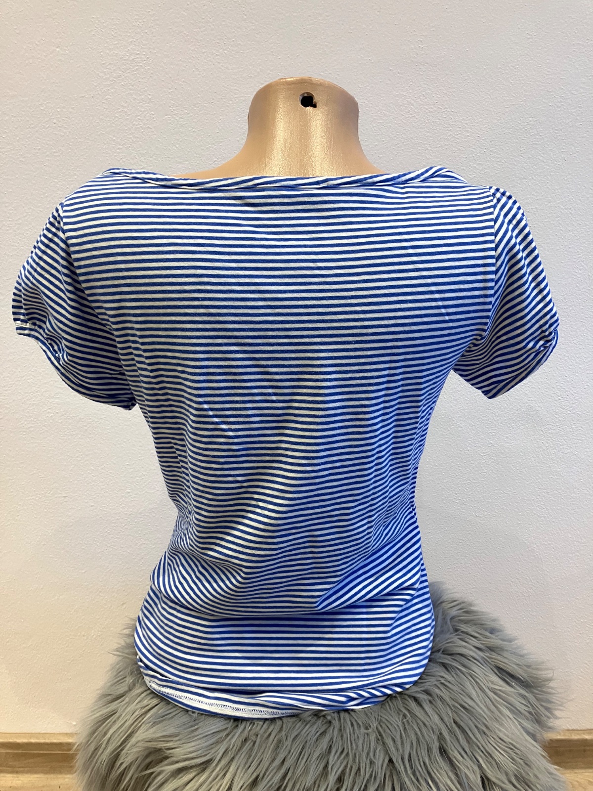 Dámske pásikavé tričko s krátkym rukávom, farba modro-biela, elastická, materiál 95%bavlna 5%spandex.