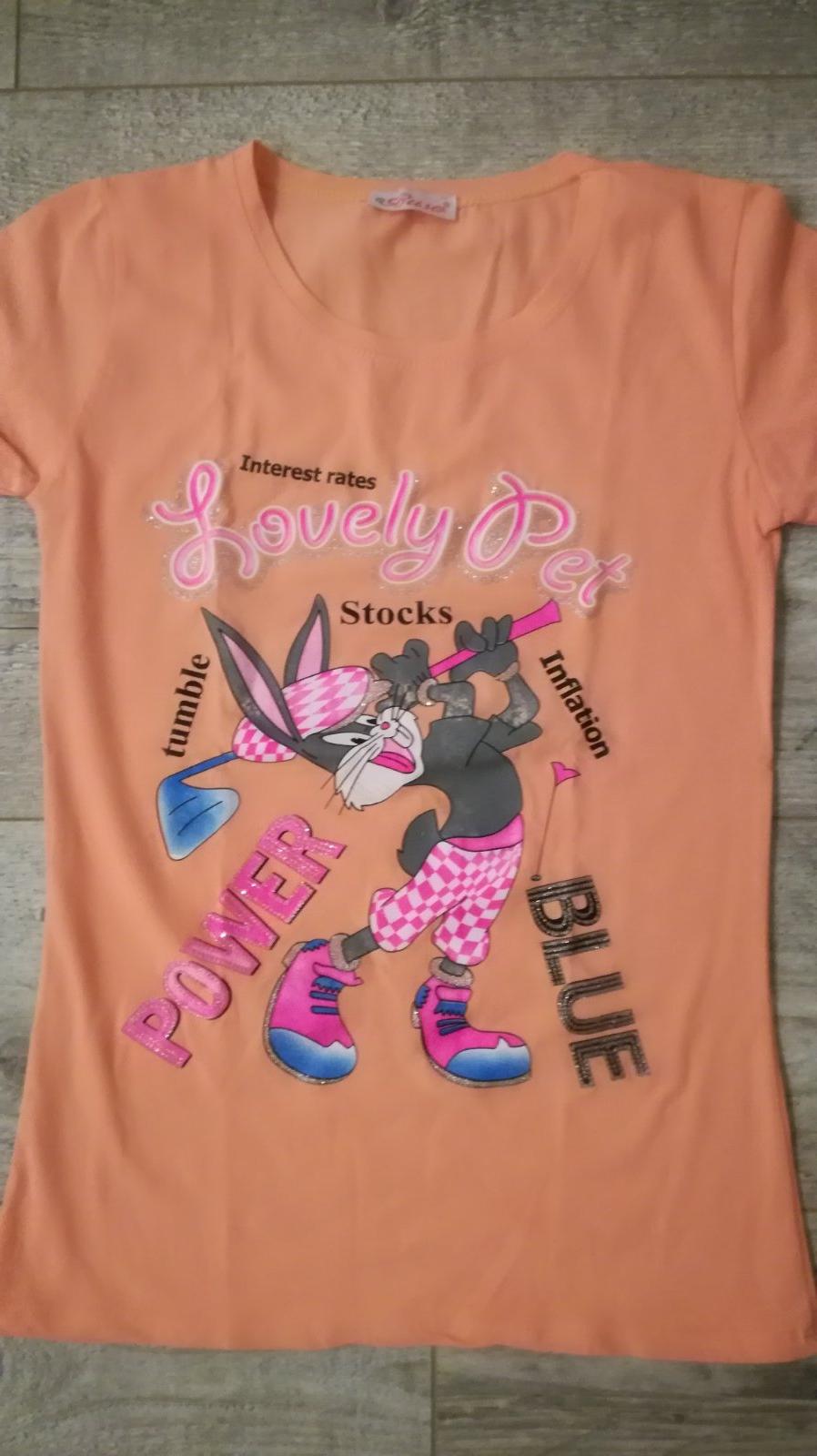 Krásne bledo oranžové tričko ku krku, len vyskúšané. Šírka 45 cm, dlžka 48 cm.