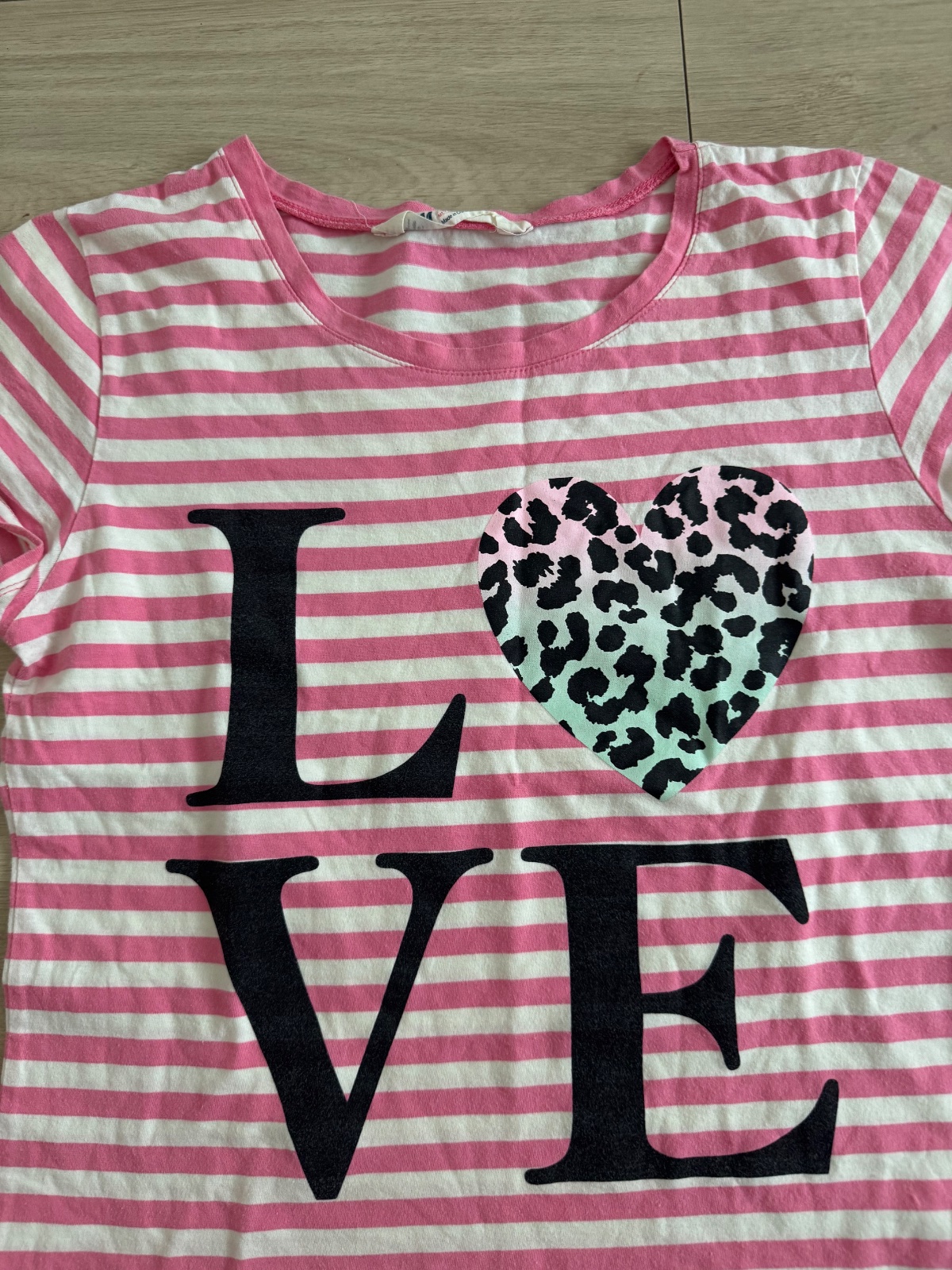 Sivo biely top so srdiečkami, H&M, 158-164 cm