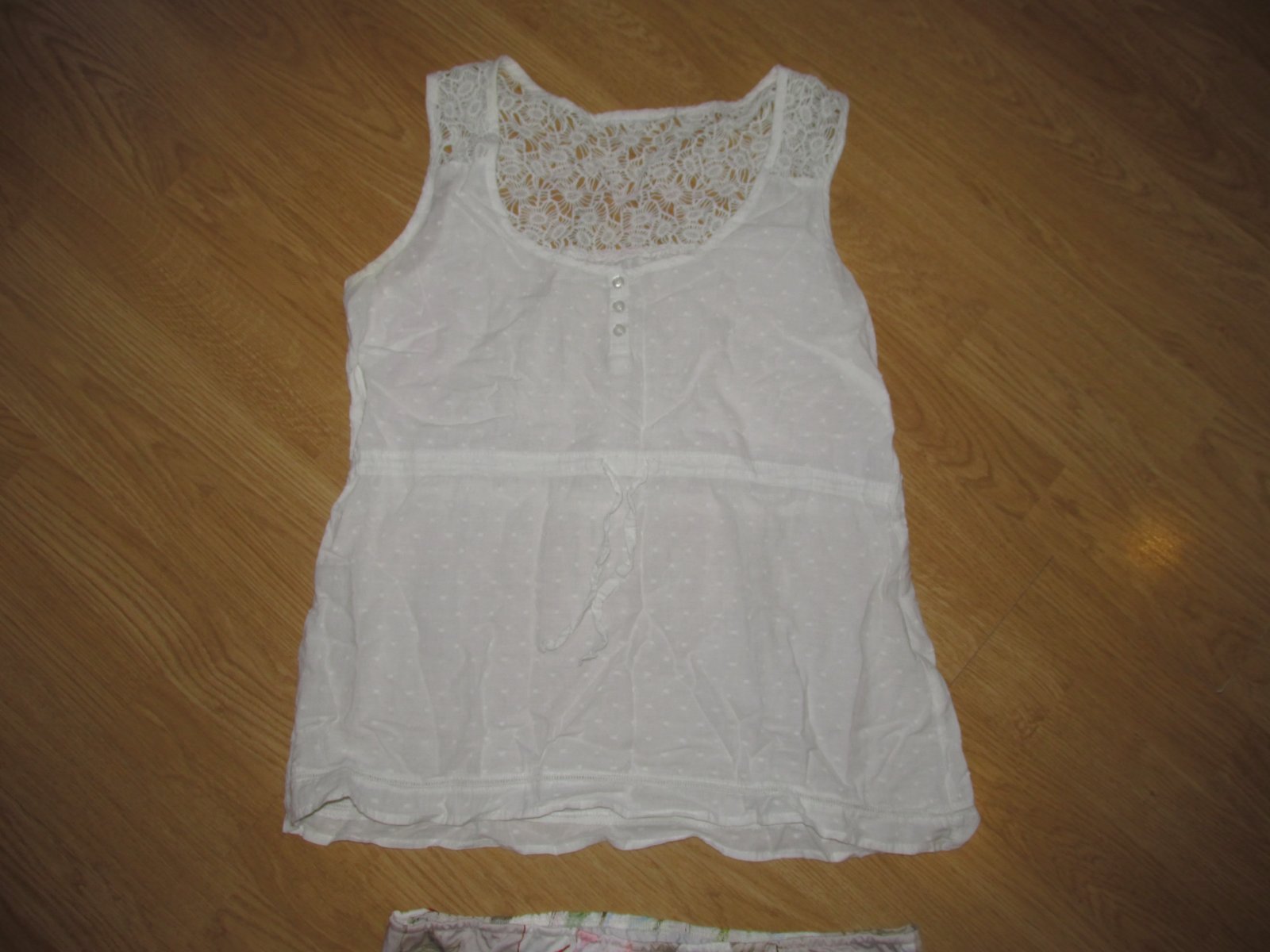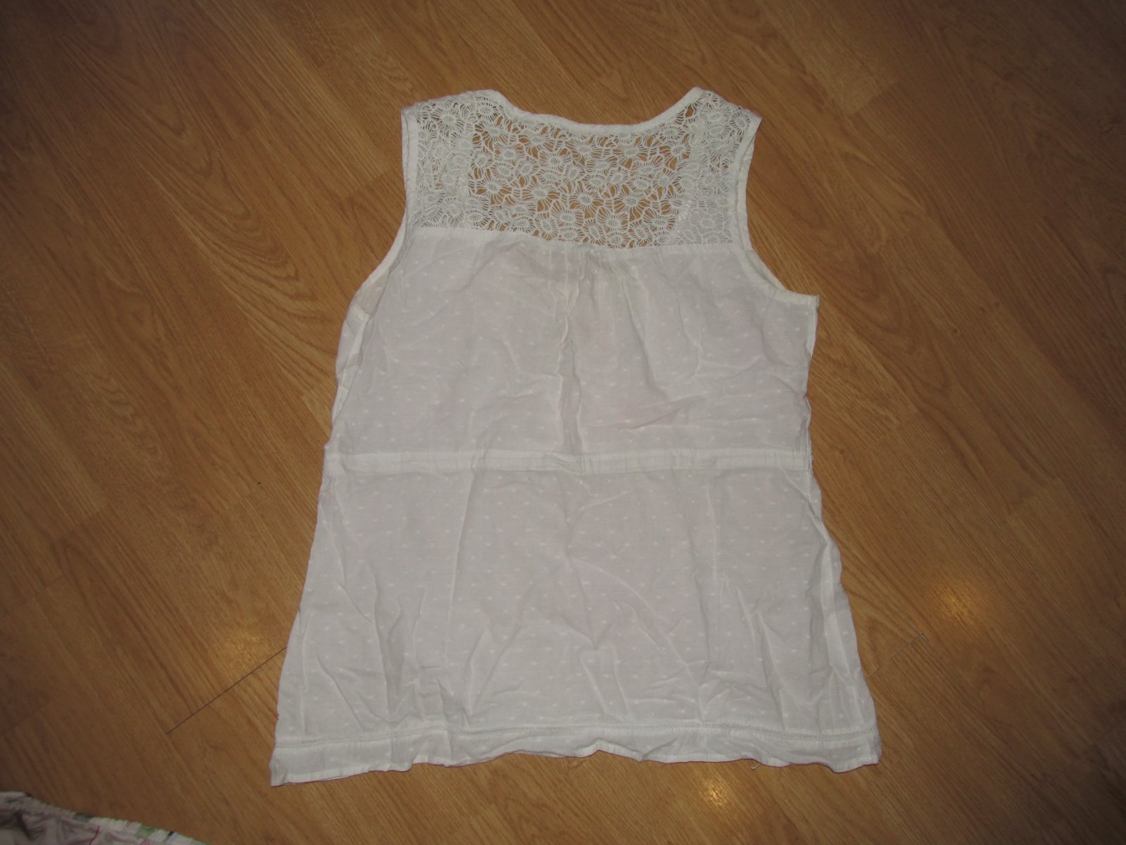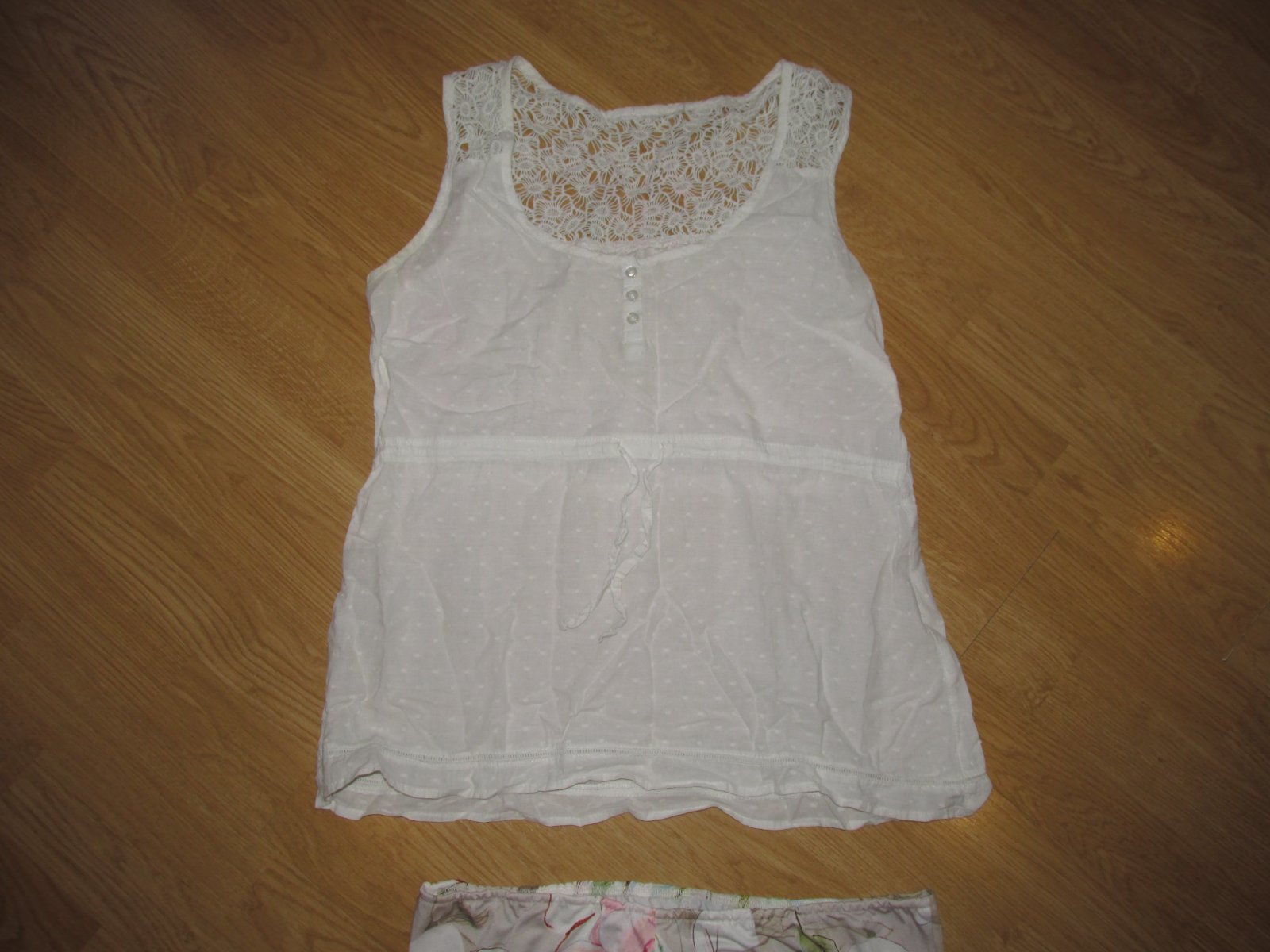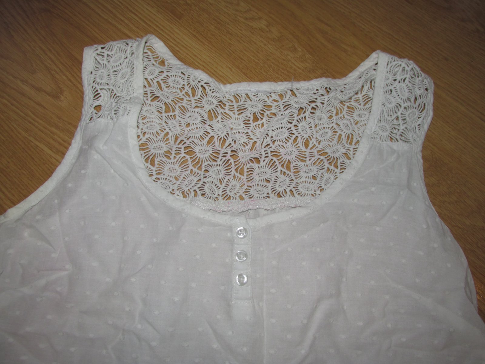 Pekné tričko s madeirou vo vrchnej časti, v strede trička sa zaťahuje šnúrkou, podľa potreby. V predu funkčné gombíky. Šírka popod paže je 51 x 2 cm.