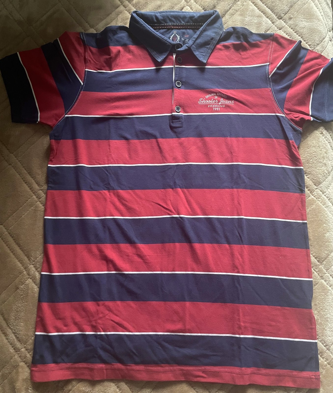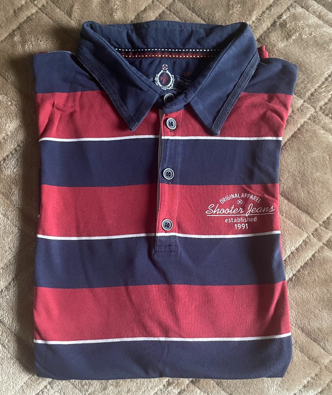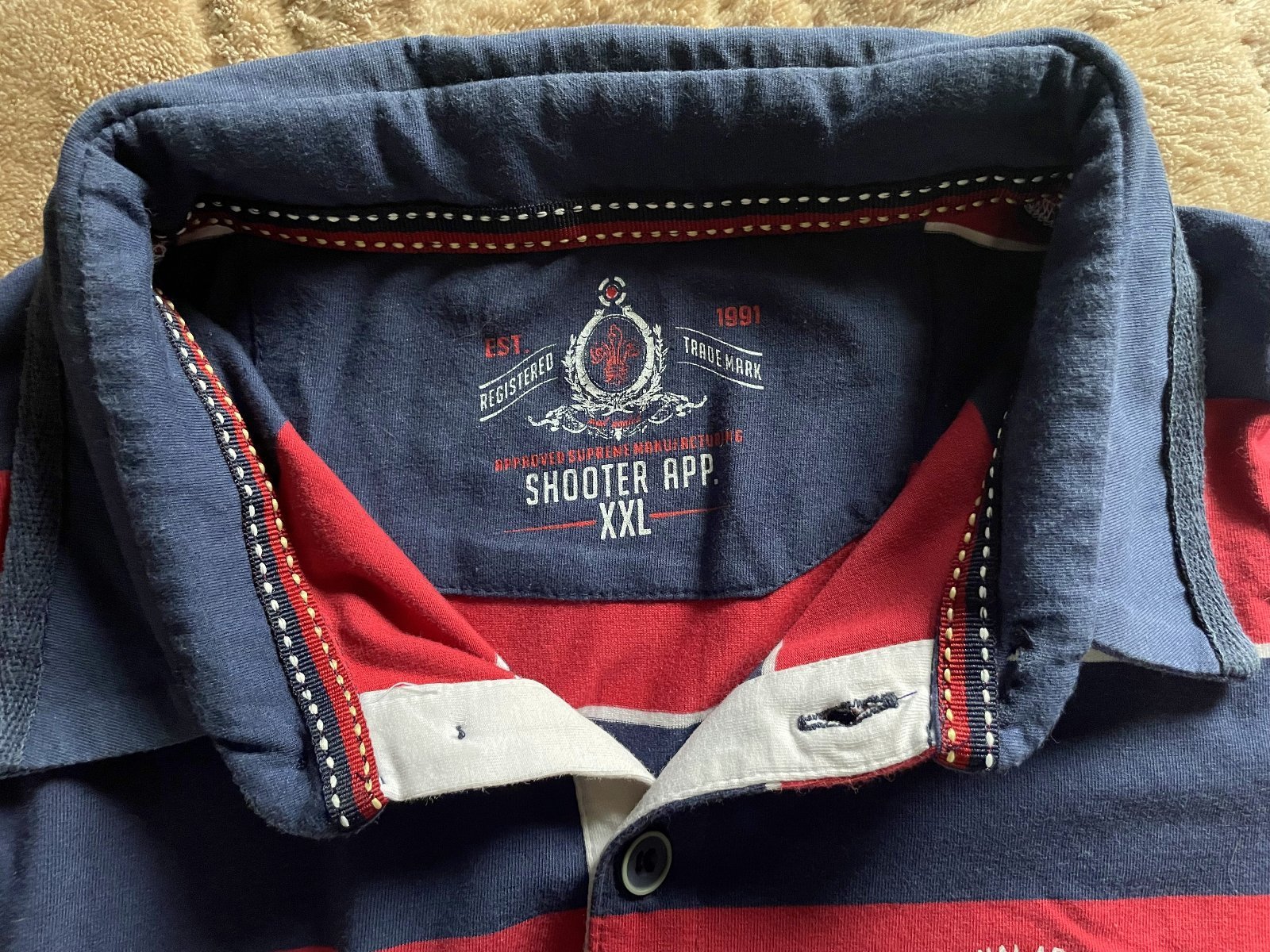 Pánska polokošeľa značky Shooter app. Veľkosť XXL. 95% Bavlna a 5% elastan. Dĺžka 74 cm a šírka 2x56 cm.