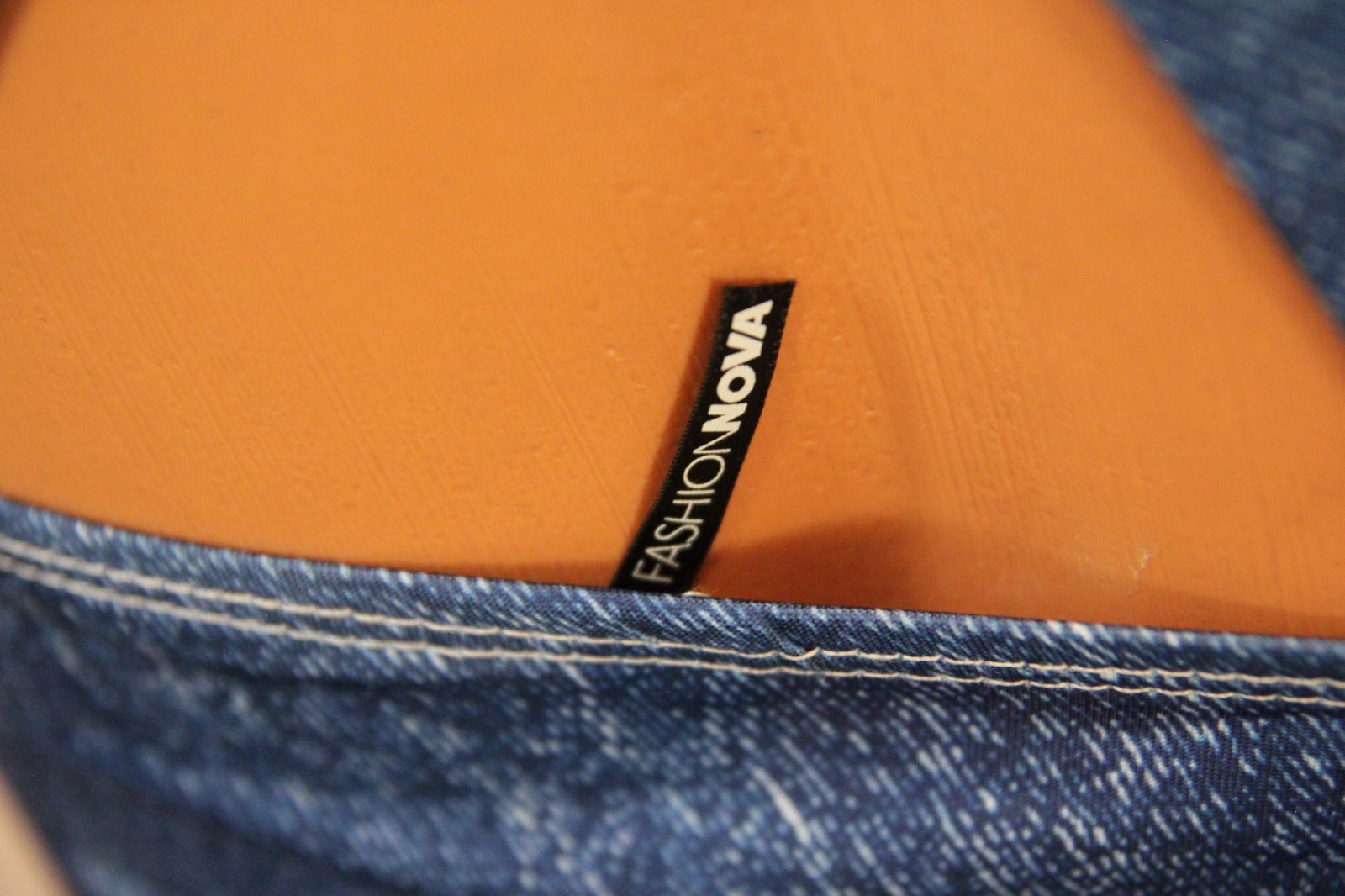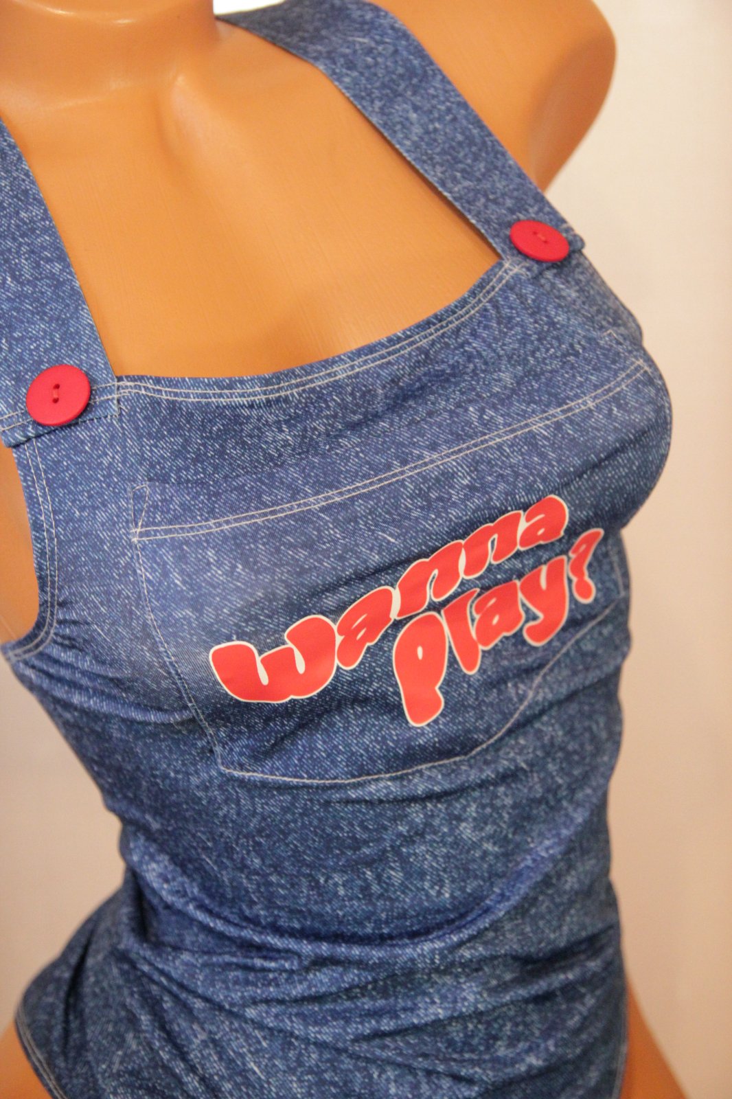 Modrý elastický body top s prekríženými ramienkami, veľkosť XS/S. Má riflovú potlač a nápis.