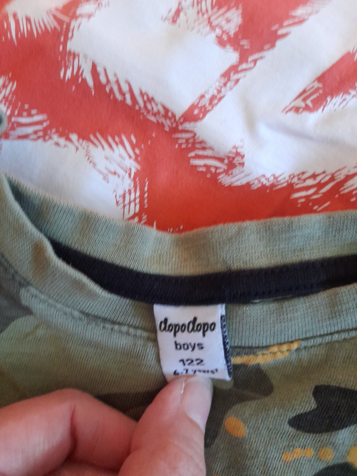 Pekne tricka, veľmi dobrý stav. Jedno pisane 116 a druhe 122. Ale obe su ako 122, nosili sme naraz. Cena spolu