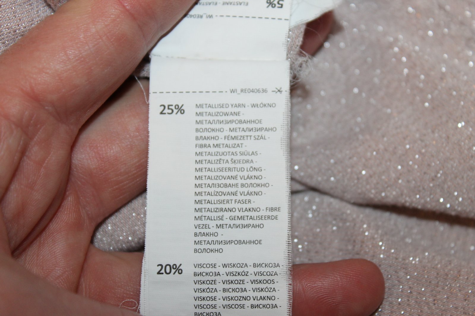 V super stave, bez poškodení. Tenší, ružovozlatá farba. Veľ. M, RO: š x 48 cm, dl. 62 cm, rukáv od krku 77/55 cm. Váha 172 g.