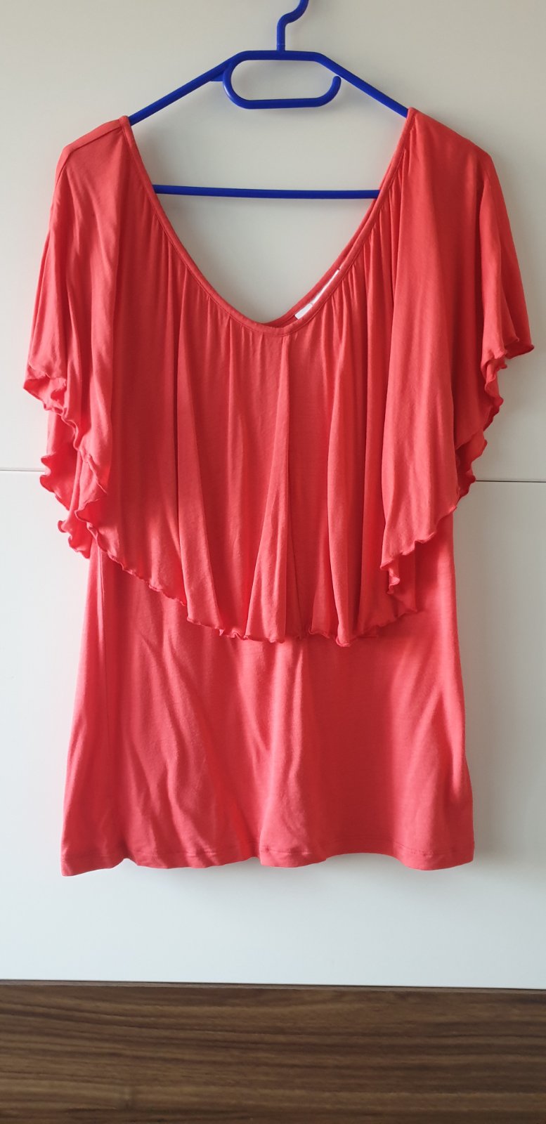 Predám pekné tričko s volánom, pri rameni má maličkú zašitú dierku na voláne, oblečené to nie je vidno. Cena 1,50 eur plus poštovné.