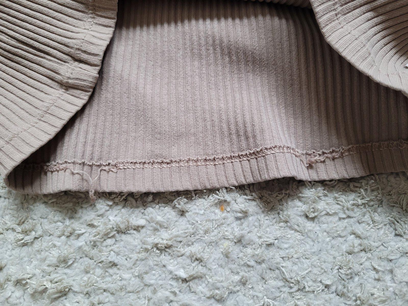 Ma aj poskodenie- vid foto. Bolo by vhodné prebehnúť s mašinou spodný lem.