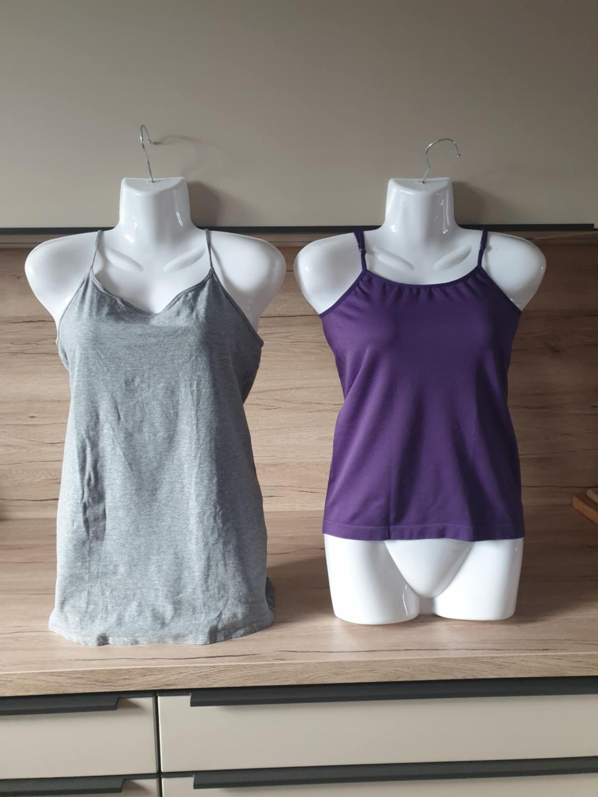 Ponúkam dve tielka na kojenie s odopinatelnymi ramienkami, farba čierna a marhuľová. Bez poškodení. Cena spolu.