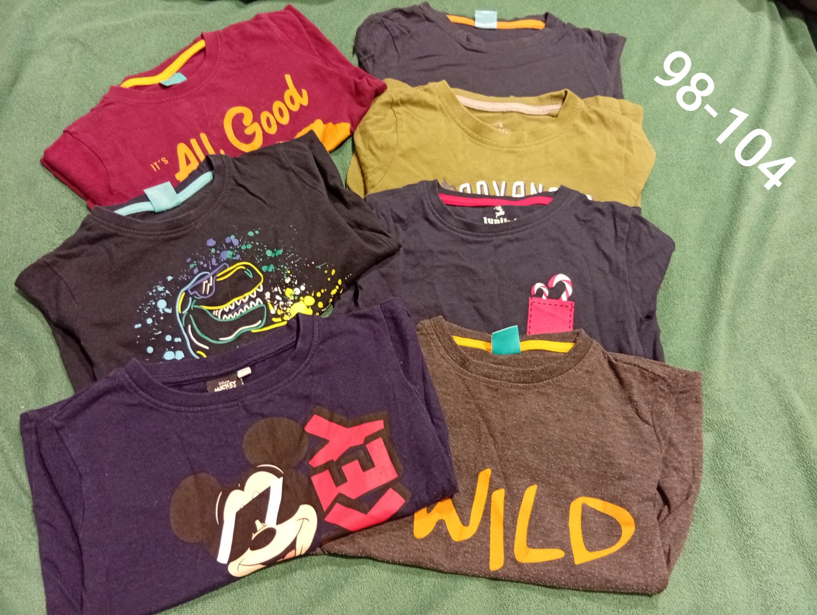 12 ks tričiek rôzne značky veľkosť 98/104 cena za všetky je 12€ kus vychádza na 1€
