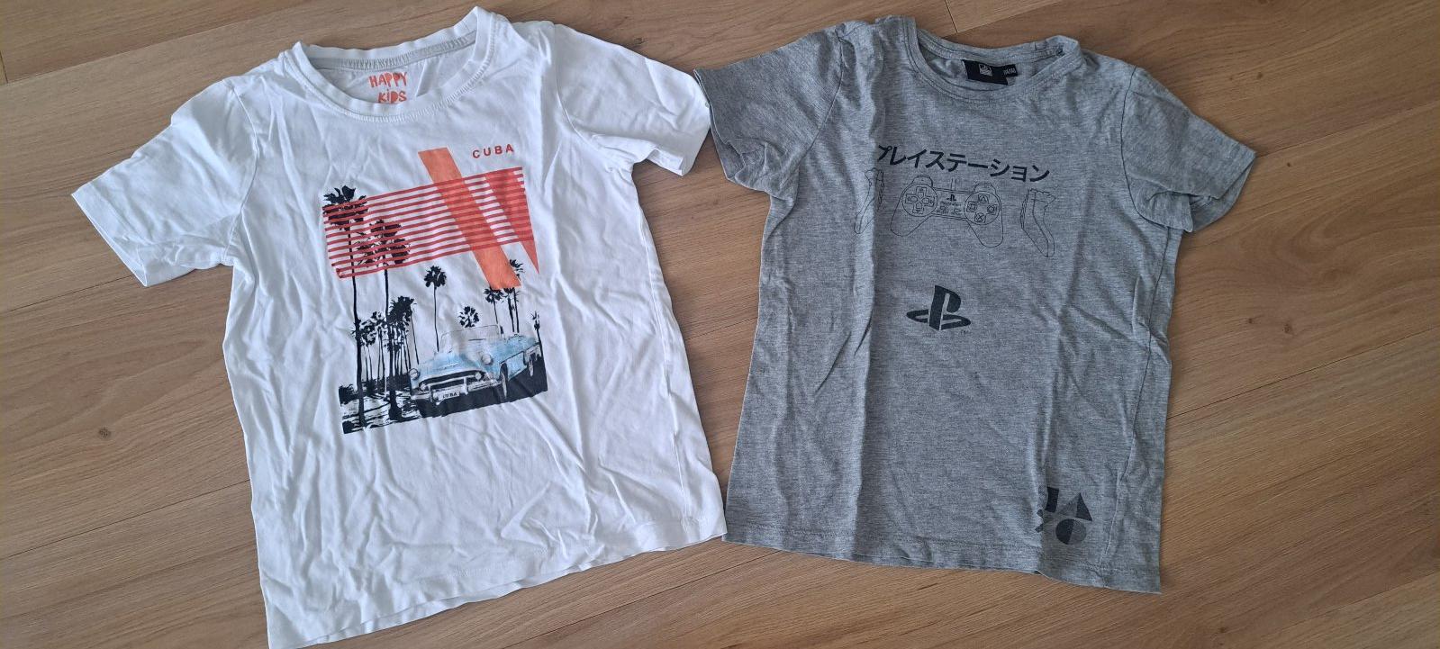Tričká po jednom dieťati bez poškodenia. Je to dvojčíslo 134/140. Biele značka Tchibo, sivé playstation. 1ks /4,5€