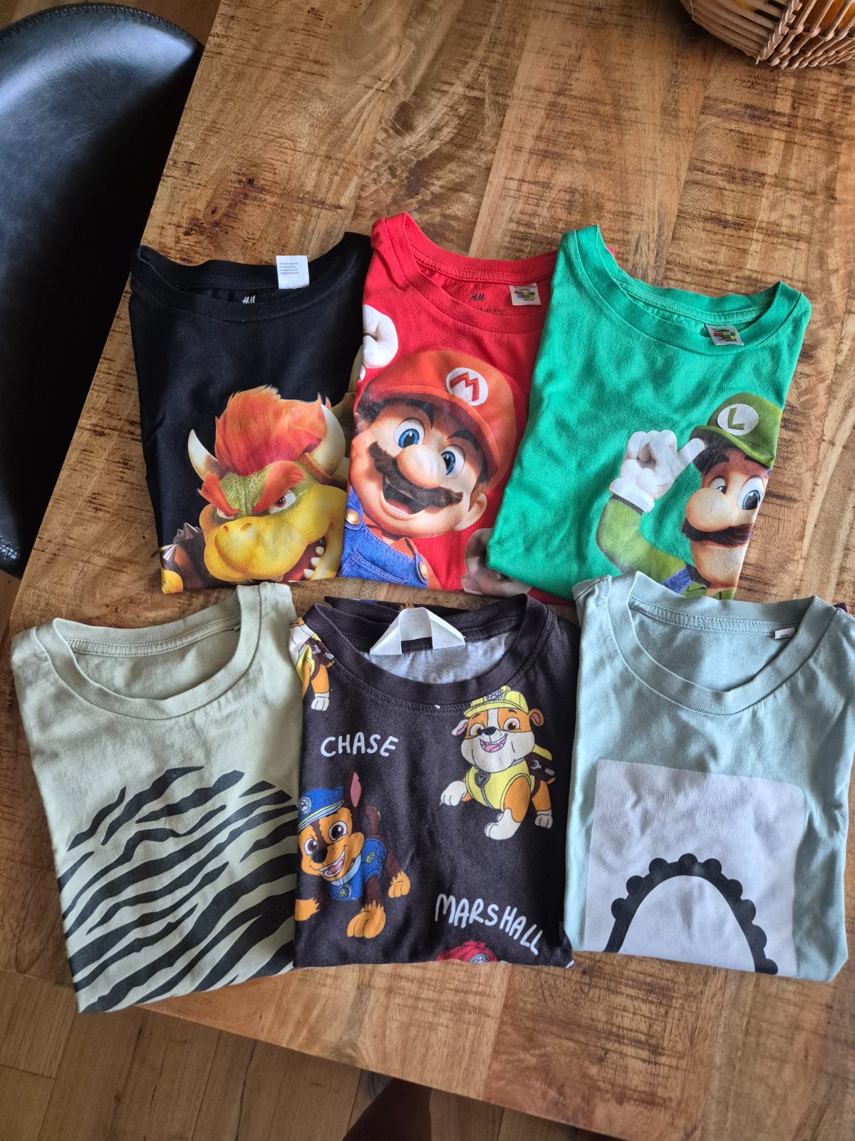 5 chlapčenských letných tričiek rôznych značiek, nosené niektoré viac, niektoré menej, stále poslúžia