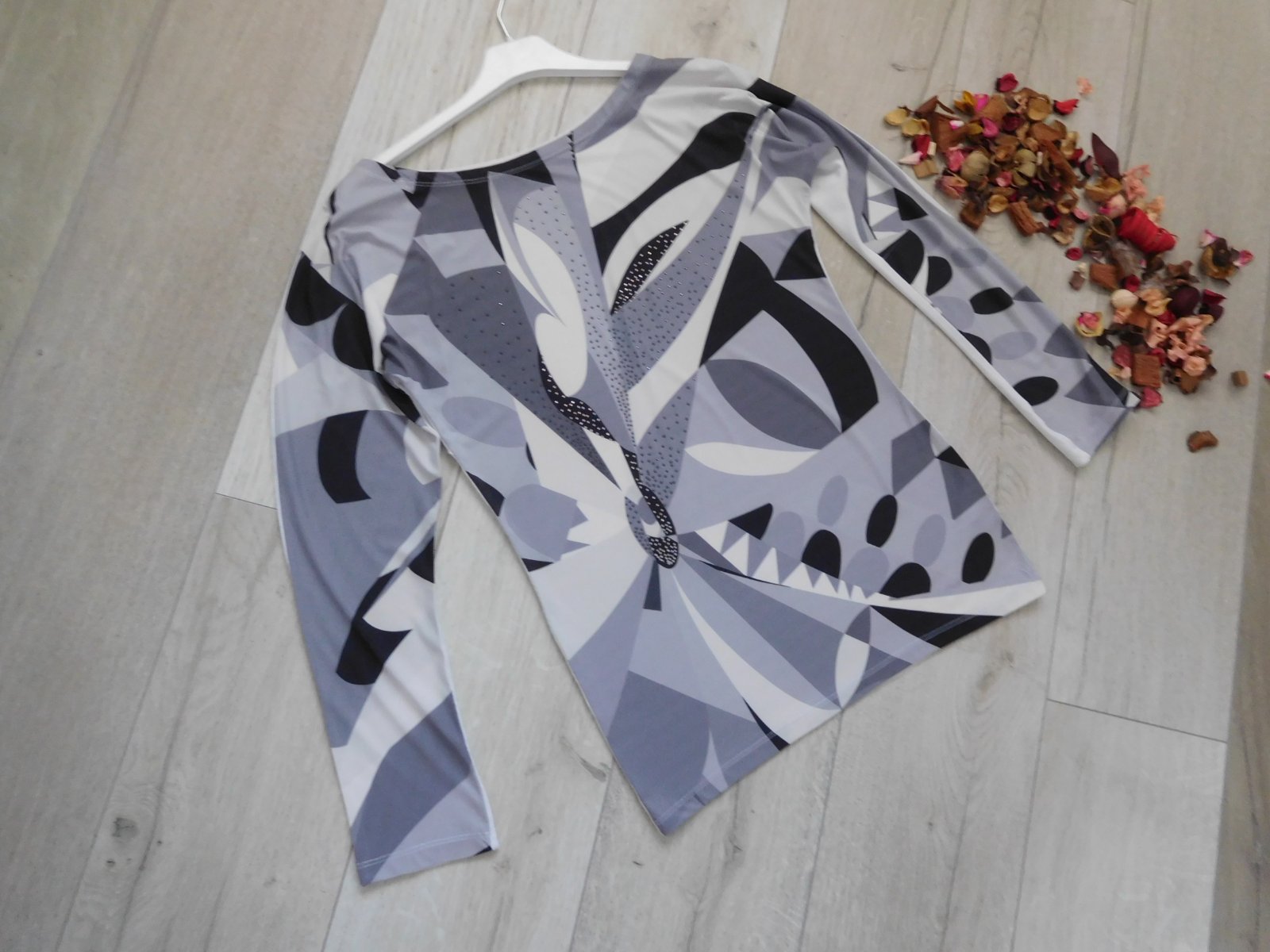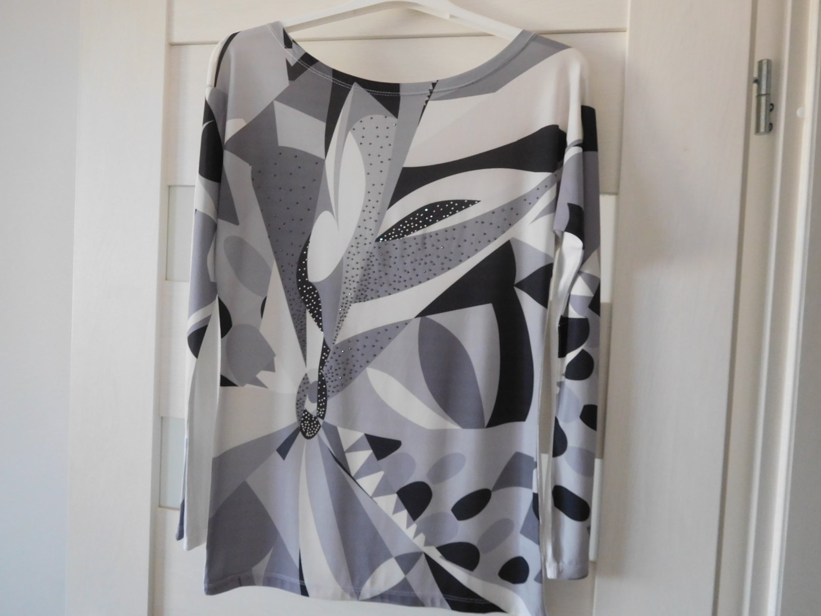 Ponúkam na predaj tričko-blúzku viď foto, veľmi príjemná látka padavá, ľahúčka, elastická, krásne žiarivé farby fotočka trošku nevykazuje, veľmi dobre nositeľné, veľmi dobre ošetrovateľná.