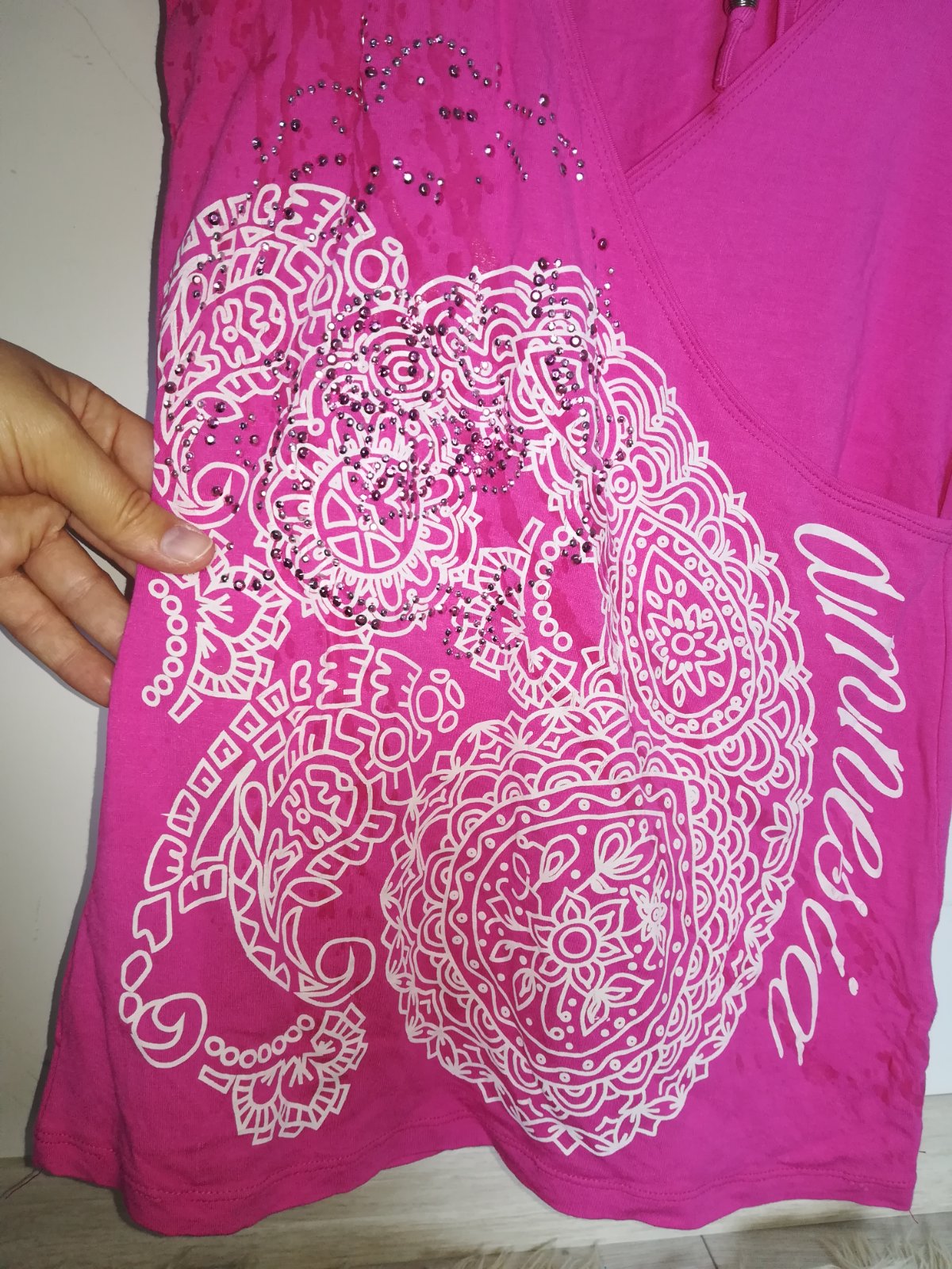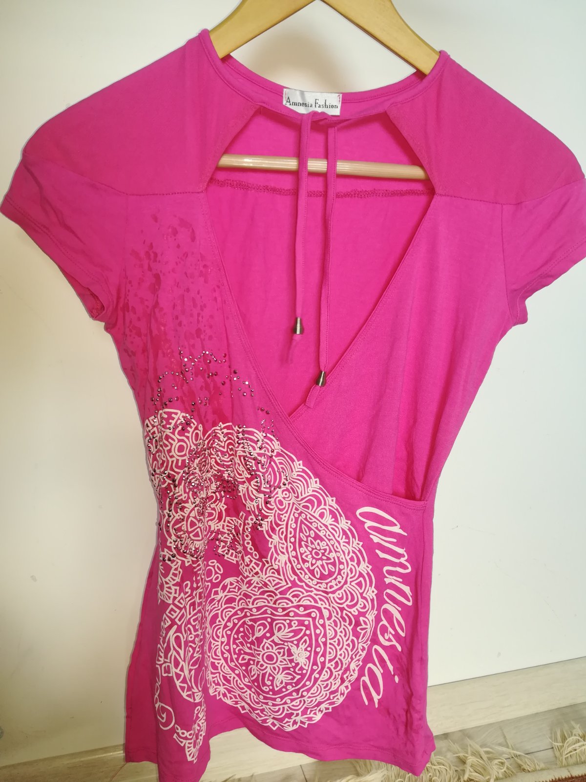 Cyklamenove damske tricko s kratkym rukavom znacky X.D COLLECTION. Povodna PC 13,90 !!! Material jemnucka viskoza s elastanom v prekrasnej cyklamenovej farbe. Tricko s kratkym rukavom s potlacou d...