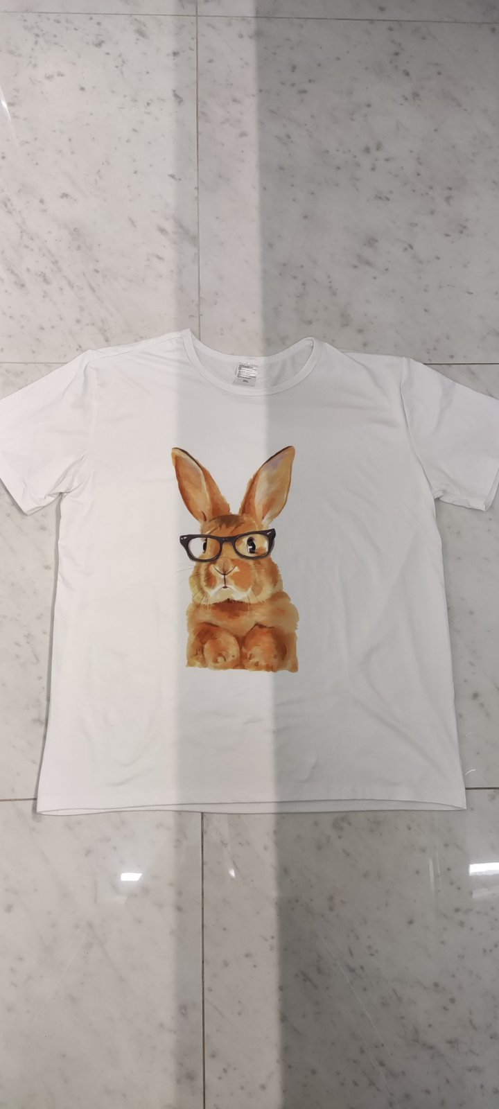 Tričko s králikom vo výbornom stave, bolo len raz oblečené, šírka v oblasti podpazušia 2x58 cm, celková dĺžka 68 cm
