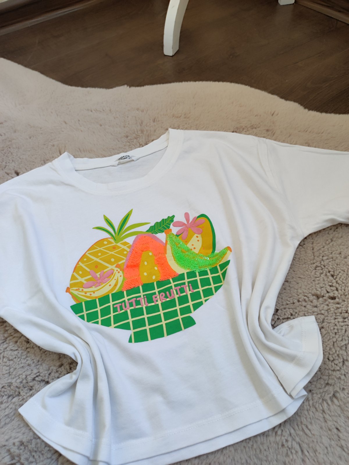 Tričko detské vo veľkosti 158. Kupované v reservede. V zadu vyšité kvety ideálne na letné dni.