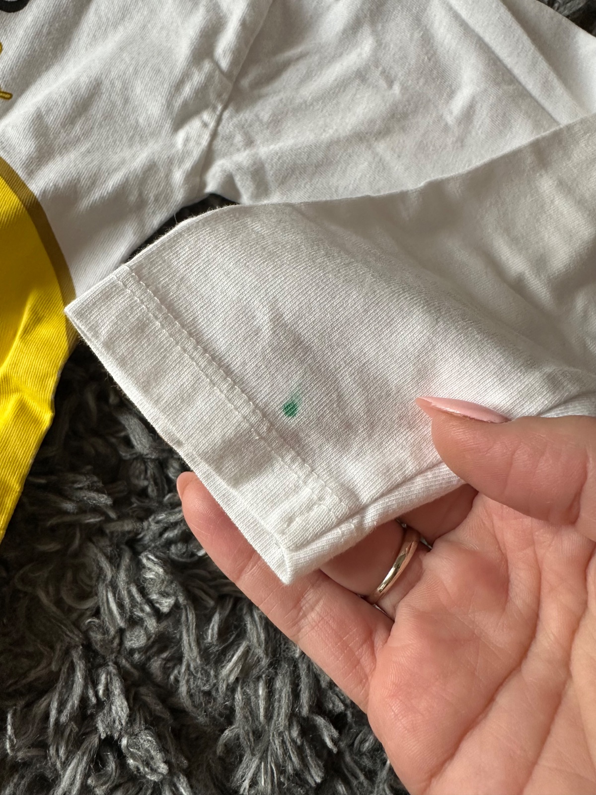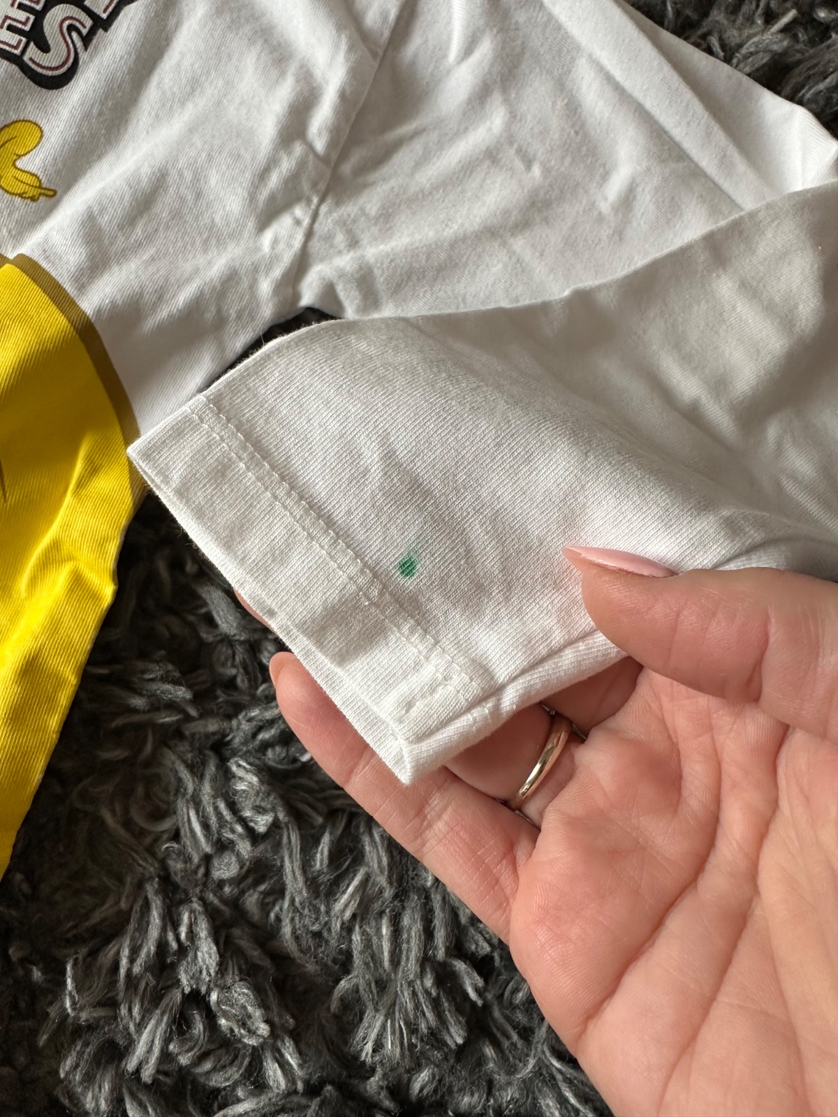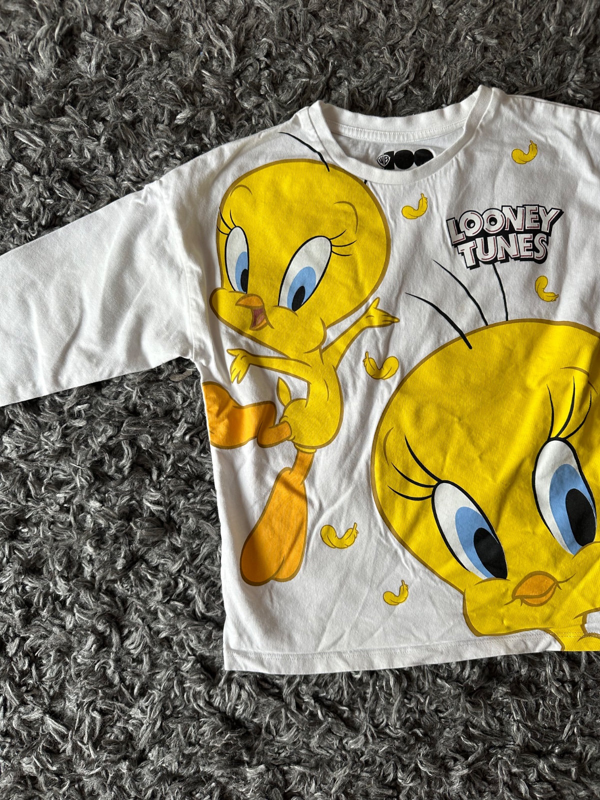 Tricko, alebo skor mikinka (hrubsi material nez bezny top). Raz oblečené a dcéra ho hned stihla fixkou zašpinit (jedna bodka zo zadnej strany rukávu - viď. foto). Velkost 134, udavam 128 kvoli pohodlnejsiemu noseniu.