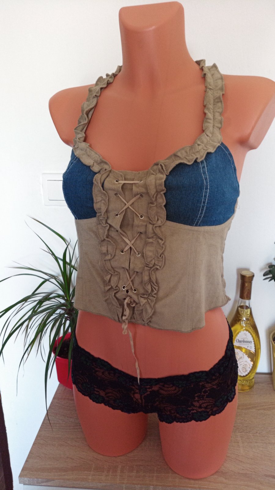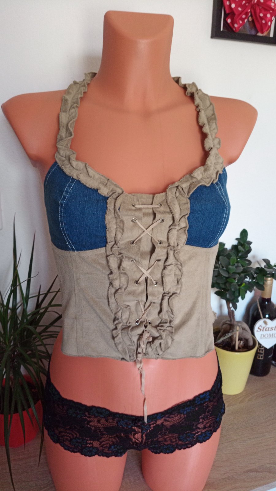 2 spôsoby nosenia... zaviazané cez krk alebo s ramienkami. Výborný stav.